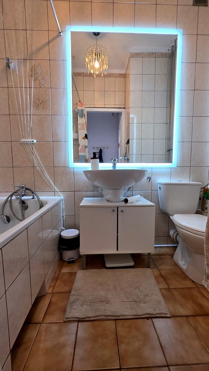 – łazienki z wanną, umywalką, lustrem podświetlanym i toaletą,