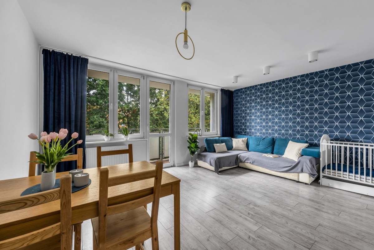 Przy ul. Krasiczyńskiej 11, czeka na Ciebie jasne i ustawne mieszkanie o powierzchni 47 m². Obecnie 2-pokojowe, z łatwą możliwością przerobienia na 3 pokoje – świetna opcja, jeśli chcesz mieć elastyczną przestrzeń na dziś i jutro. Budynek z lat 70. jest po modernizacji: ocieplony, z wymienionymi pionami, spokojny i kameralny. Atutem mieszkania jest układ dwustronny (południe-północ) – zapewnia świetną wentylację i naturalne doświetlenie przez cały dzień. Oba widoki wychodzą na zielone podwórze, co daje ciszę i brak zabudowy tuż za oknem. Na piętrze jest tylko dwóch sąsiadów. Do mieszkania przynależy piwnica ok. 3 m² oraz dostęp do rowerowni, więc ze schowkiem czy miejscem na jednoślad nie będzie problemu.
