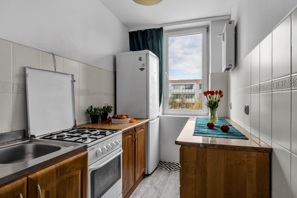 Ogromnym plusem jest lokalizacja – zaledwie 6 minut pieszo do stacji metra Kondratowicza, a w pobliżu także liczne autobusy i tramwaje. Jednocześnie wokół nie brakuje zieleni i przestrzeni do aktywnego spędzania czasu. Pod blokiem znajduje się bezpłatny parking dla mieszkańców.