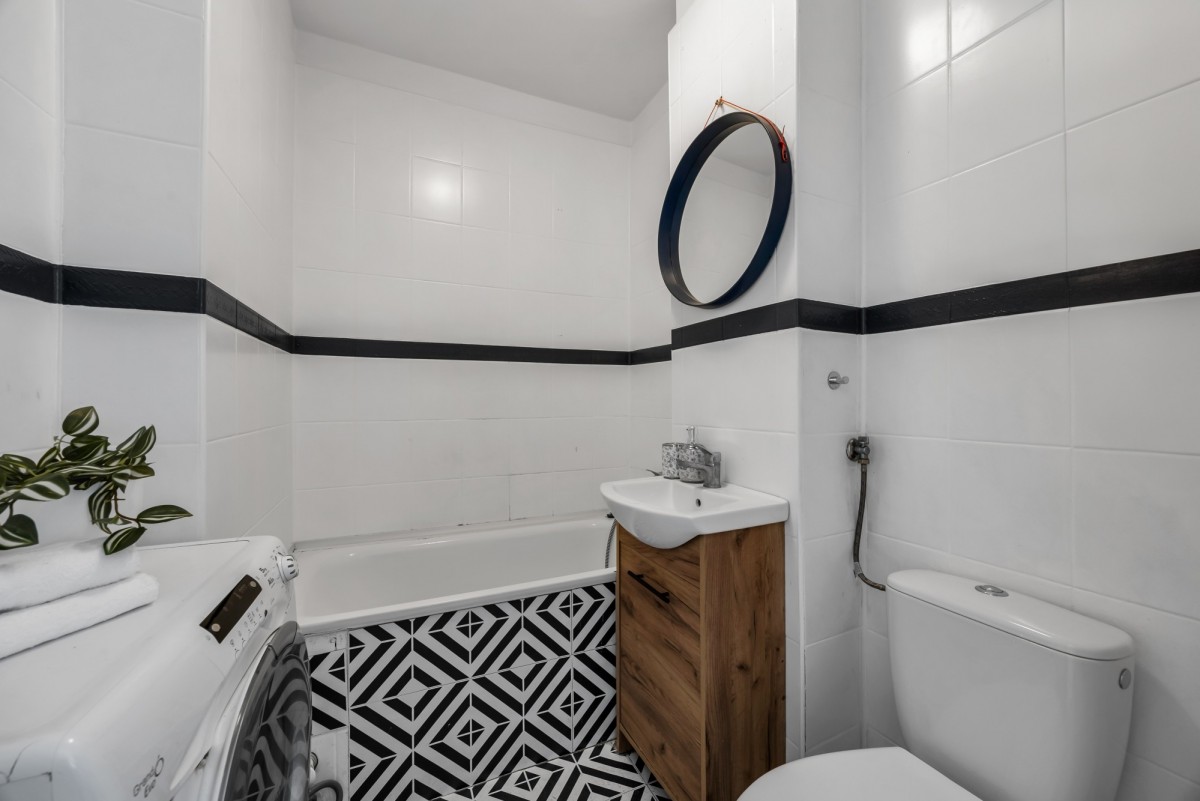 Mieszkanie zlokalizowano na warszawskim Targówku. Dogodny dojazd do centrum, liczne punkty usługowe i parki, sprawiają, że jest to coraz chętniej wybierane osiedle, jako miejsce zamieszkania. Blisko METRA – 6min piechotą. Targówek posiada wiele ścieżek rowerowych, co w dobie rosnącej popularności tej aktywności jest ogromną zaletą. Blisko bloku znajdują się pasaże handlowe, szkoły, przedszkola, żłobki, przychodnie, szpital, centra sportowe i handlowe (CH Targówek , M1)