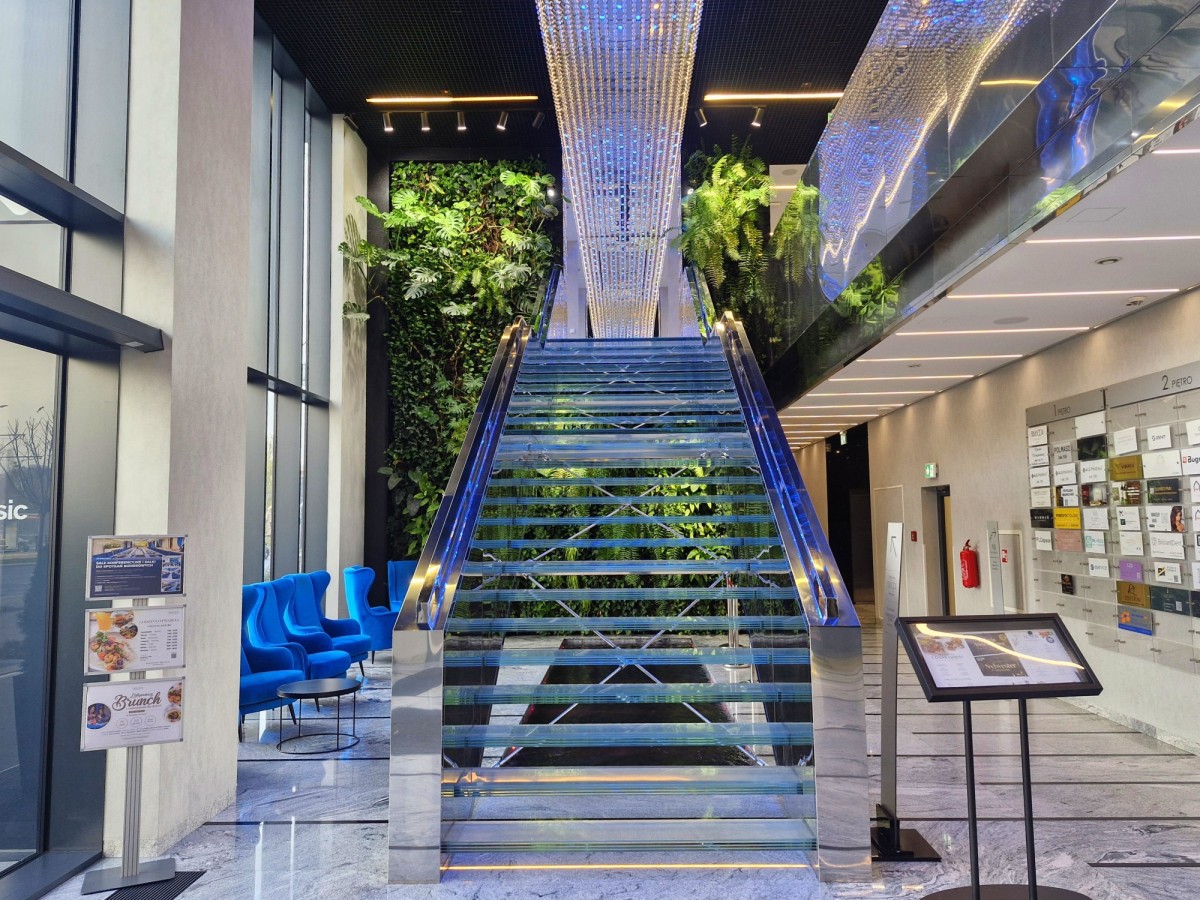 – Nowoczesny, prestiżowy kompleks z recepcją, całodobową ochroną i eleganckim lobby, zapewniający bezpieczeństwo i komfort mieszkańcom.