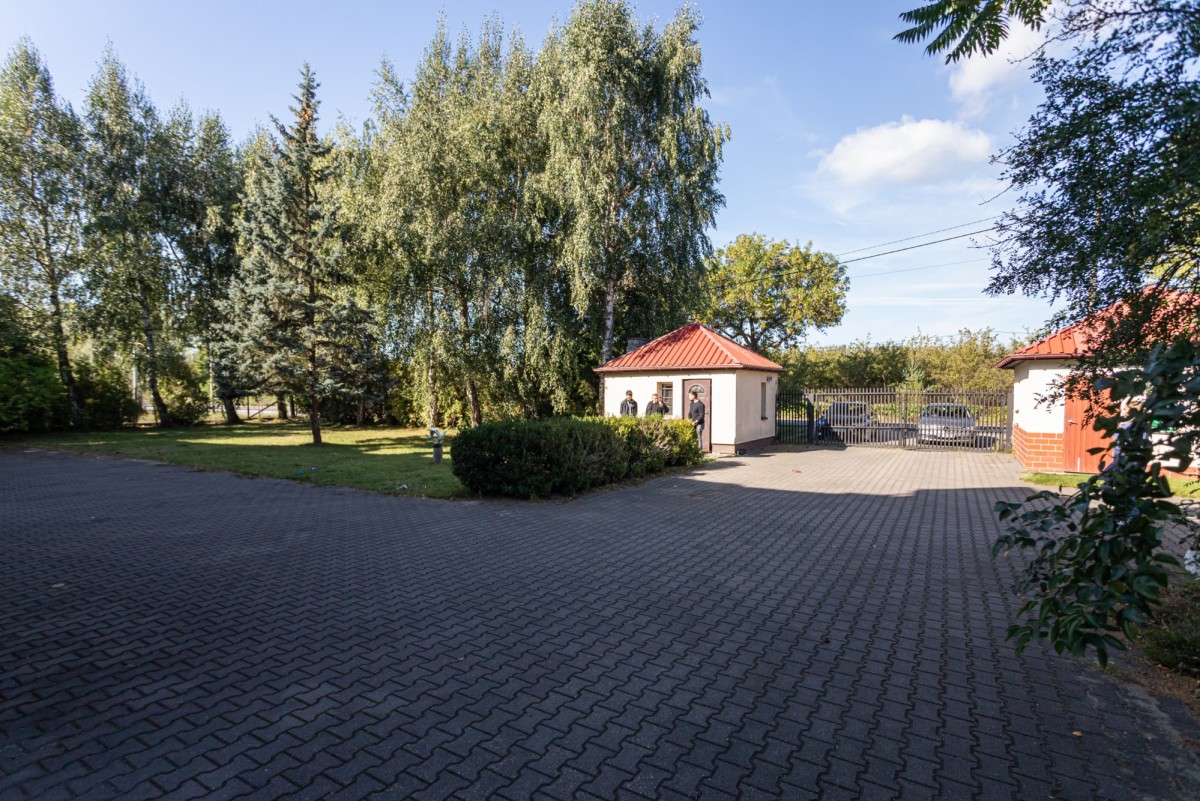 Budynek stoi na działce o powierzchni 5412 m², oferując przestrzeń do różnorodnego zagospodarowania i rekreacji. Na terenie działki znajdują się trzy murowane budynki gospodarczo-garażowe: