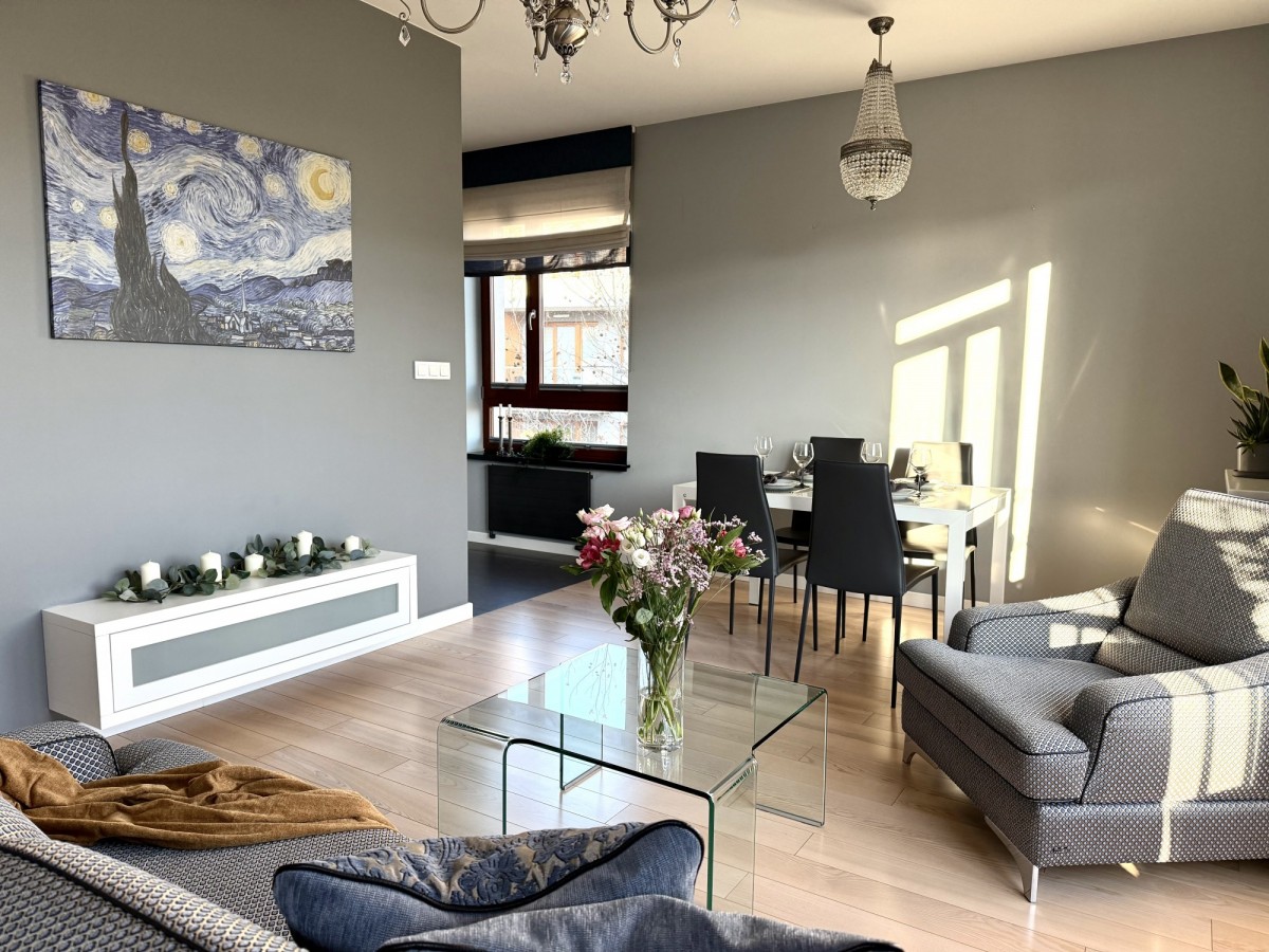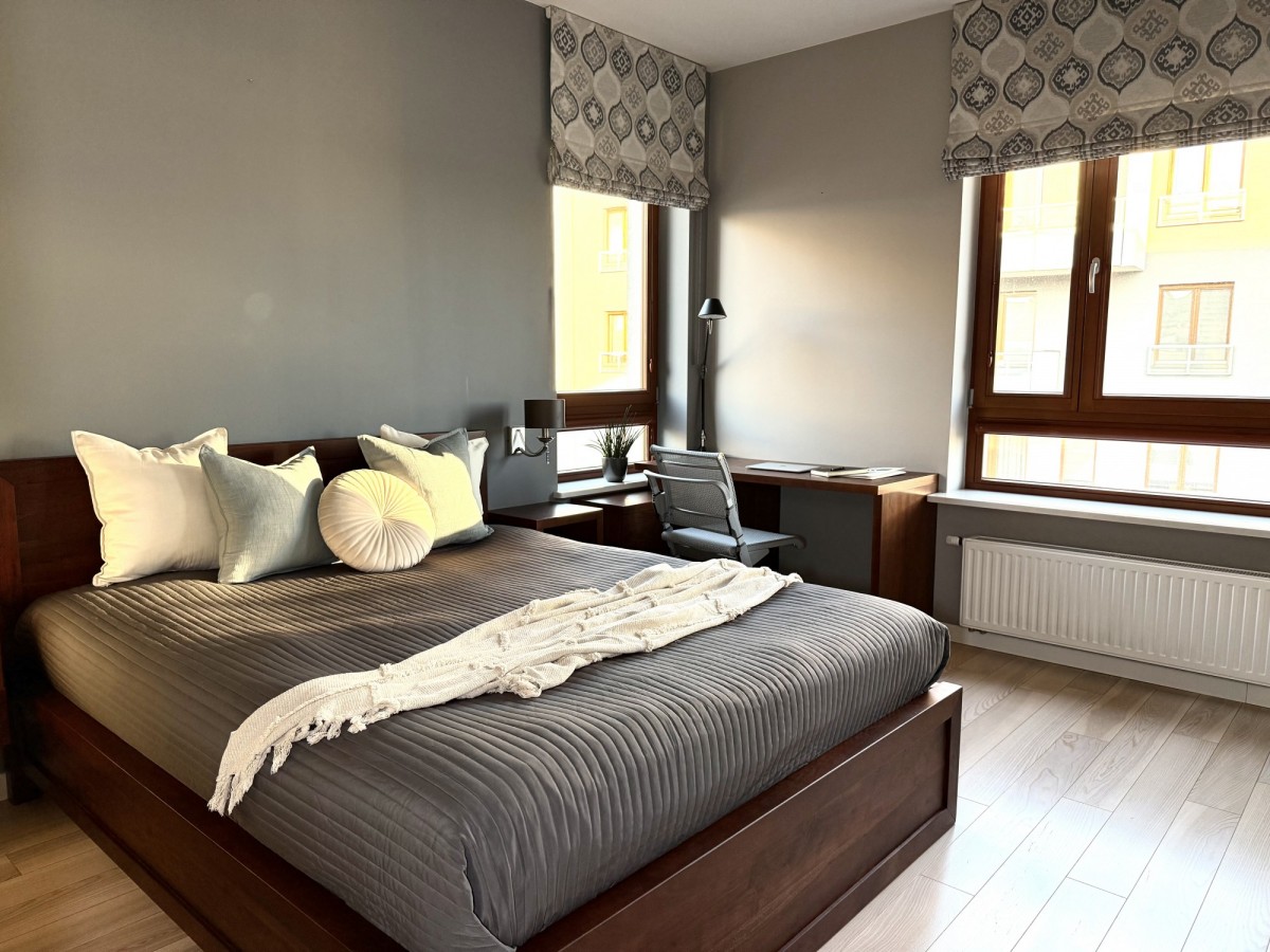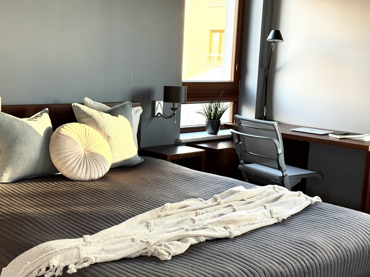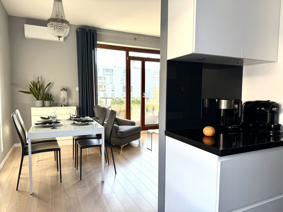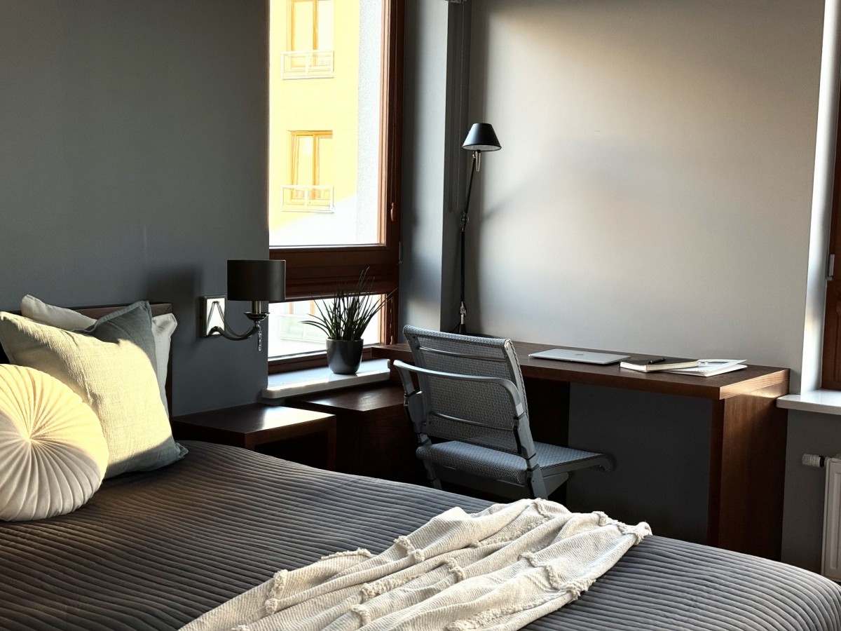 • Balkon, klimatyzacja, designerskie oświetlenie, eleganckie meble — tutaj każdy detal tworzy spójny efekt.