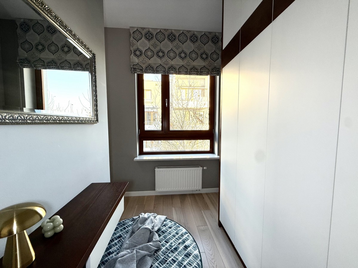 Apartament znajduje się na 2. piętrze eleganckiego, trzypiętrowego budynku z windą, w samym sercu Miasteczka Wilanów.