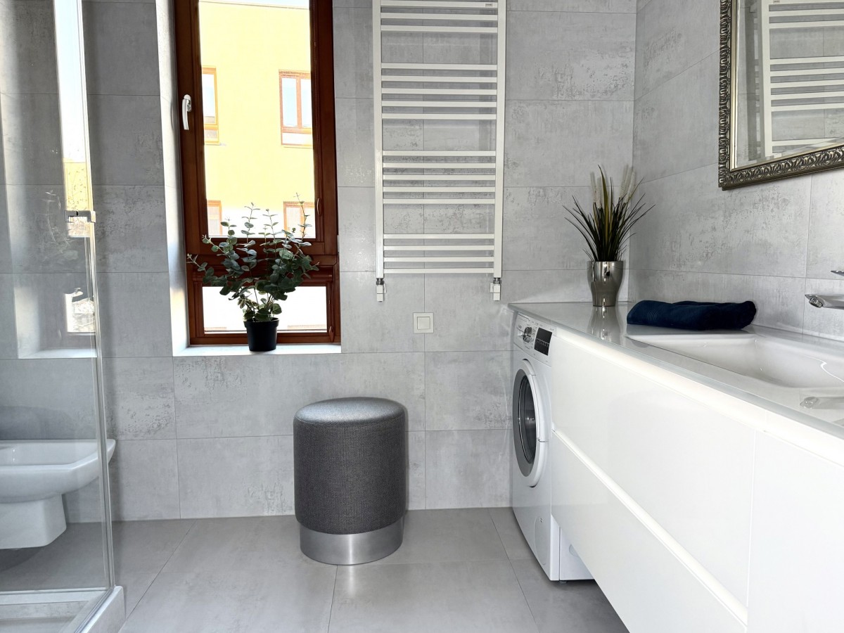 • Łazienka z oknem 5,63 m² – jasna, elegancka, wykończona materiałami o wysokiej trwałości i jakości.
