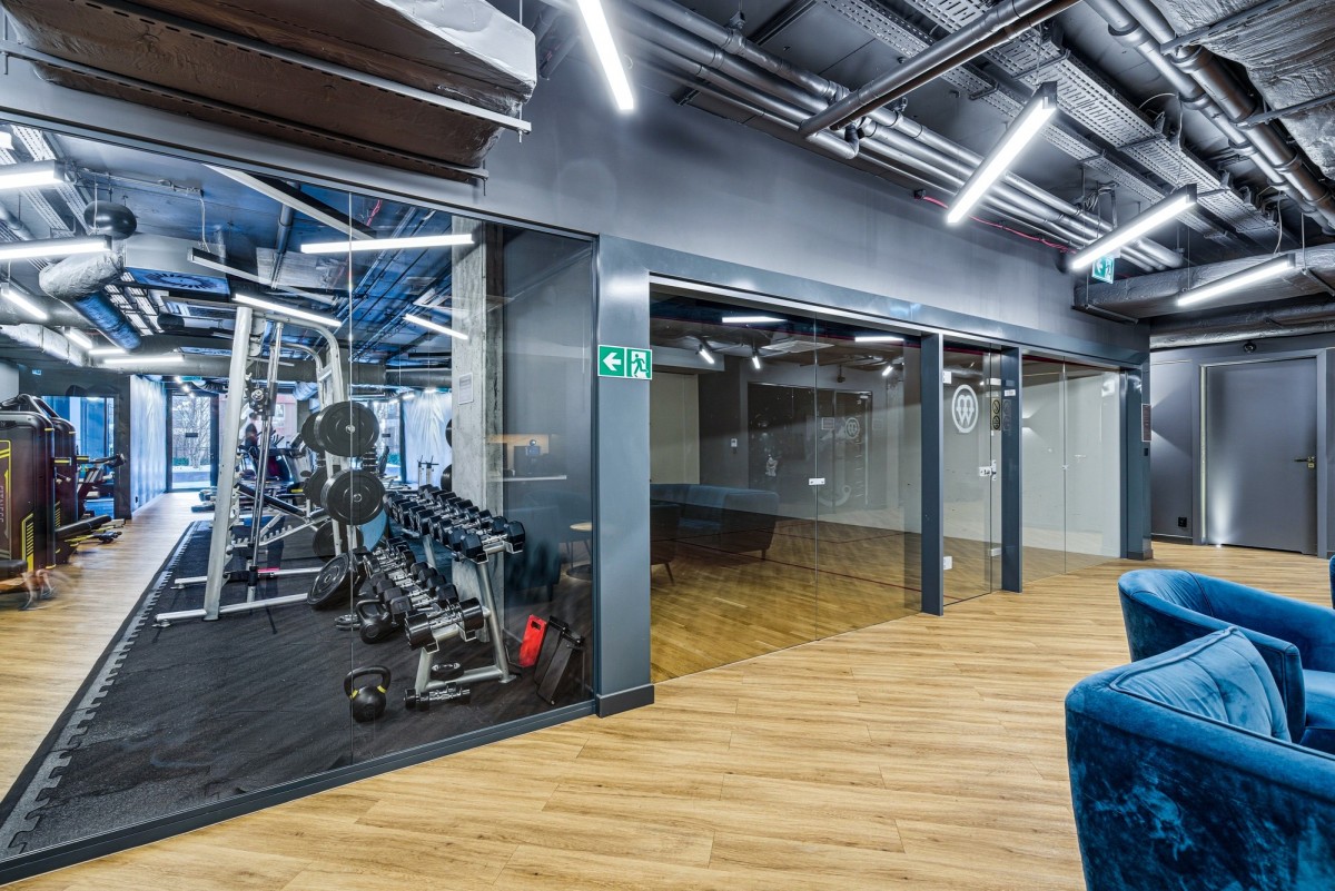 • strefę wellness dostępną wyłącznie dla mieszkańców: sauna, jacuzzi oraz siłownia, boisko do squasha.