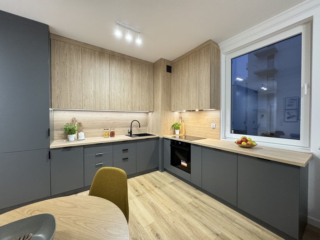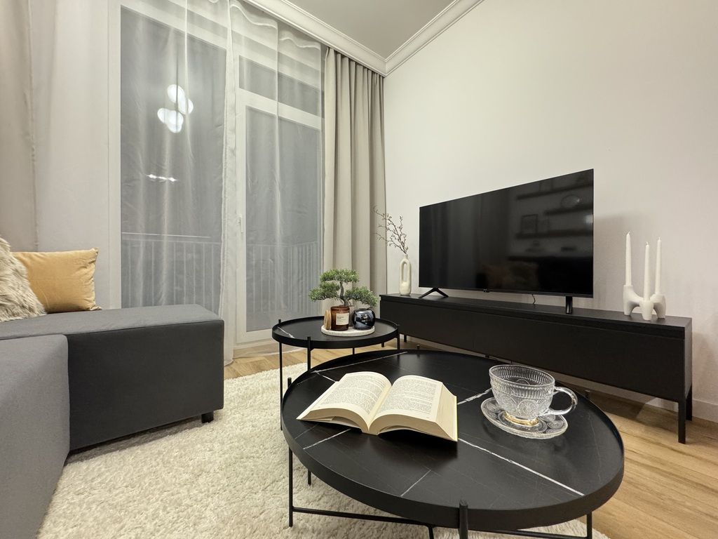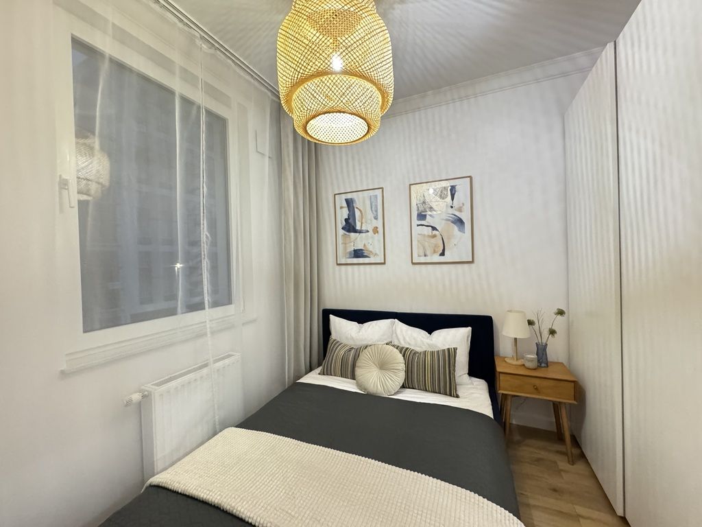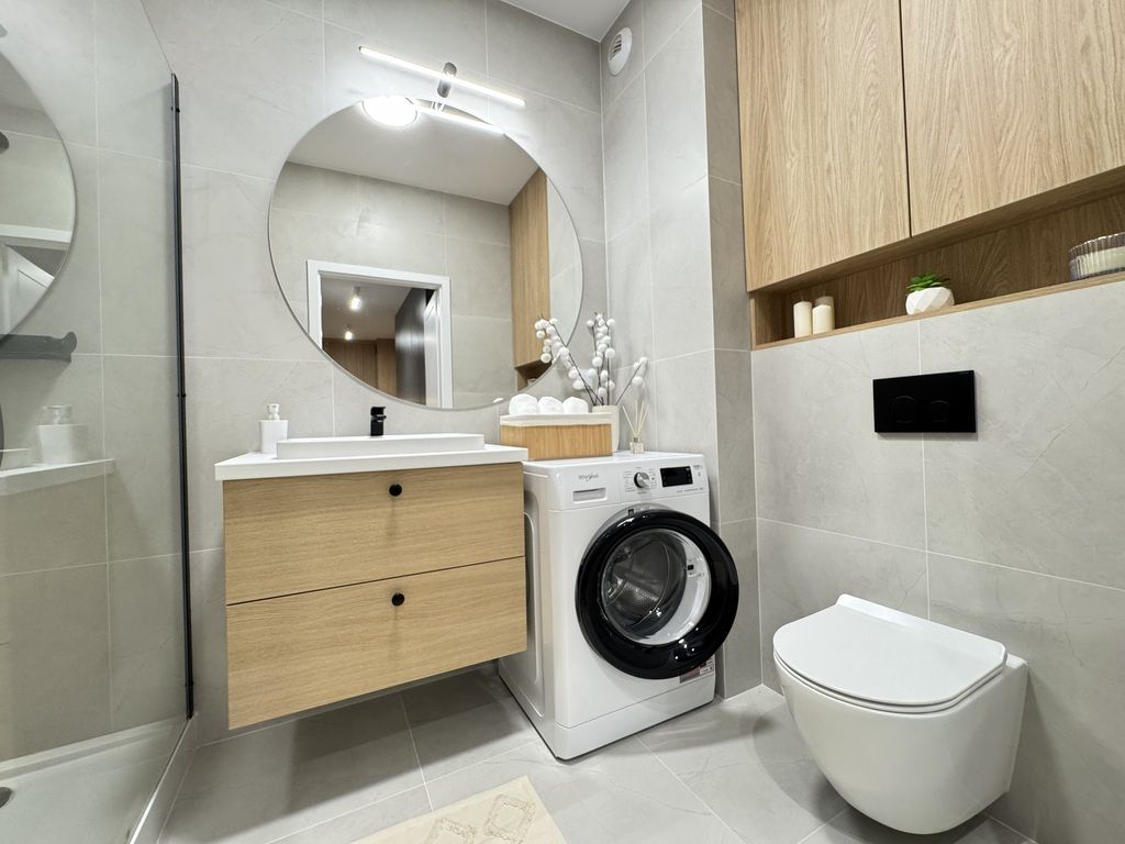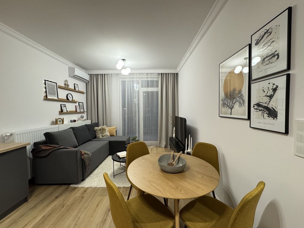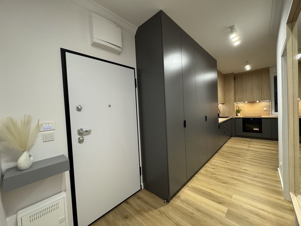 Apartament ma powierzchnię 54 m2 i znajduje się na 2 piętrze. Apartment z balkonem, 2 sypialnie salon w nowym budynku z windą . Apartament w pełni wyposażony w klimatyzację i umeblowany z telewizorem, lodówką, pralką, zmywarką, kuchenką indukcyjną, piekarnikiem. Świeżo odebrany, zaprojektowany przez architekta i wykończony z dbałością o szczegóły.