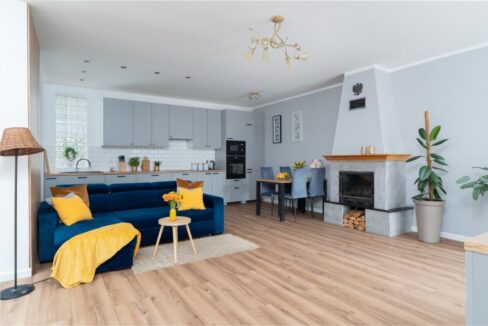 Zachowany jest oryginalny układ. Udało się również zachować przedwojenny charakter wnętrza. Newątpliwie klimatu dodaje dędowy parkiet ułożony w jodłę, oryginalna stolarka wewnętrzna ze świetlikami nad drzwiami do pokoi i kuchni oraz piec kaflowy! Piec jest oczywiście tylko ozdobą 😉