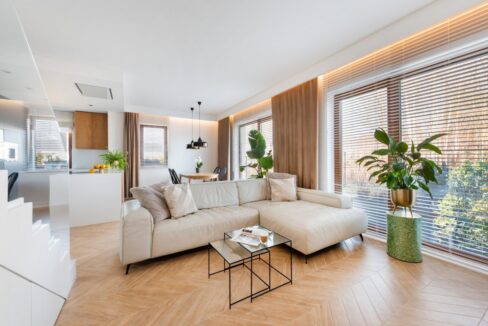 Marmurowe podłogi, drewniany parkiet, przeszklone ściany, niestandardowy projekt wnętrza, galeryjna przestrzeń to główne cechy tej niezwykłej oferty.