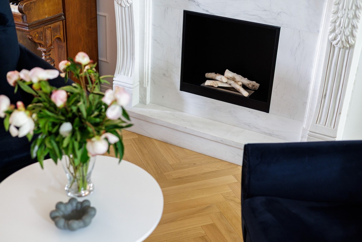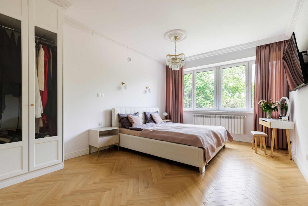 z wykorzystaniem wysokiej klasy materiałów. W trakcie modernizacji zostały wymienione piony, instalacja elektryczna. Na podłogach znajduje się dębowy parkiet.