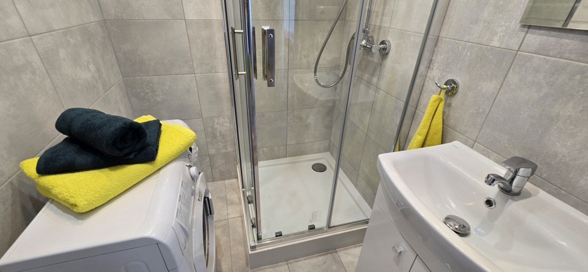 Łazienka z prysznicem i oddzielne WC.