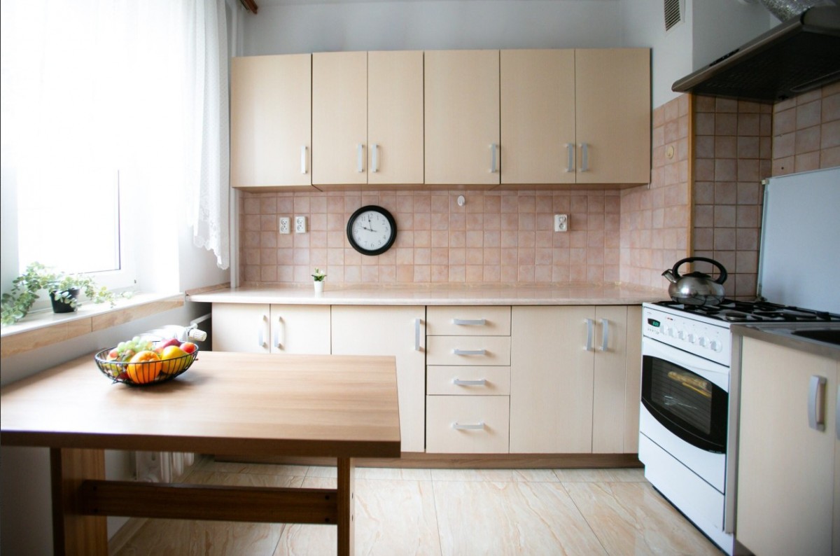 duża, widna kuchnia z oknem