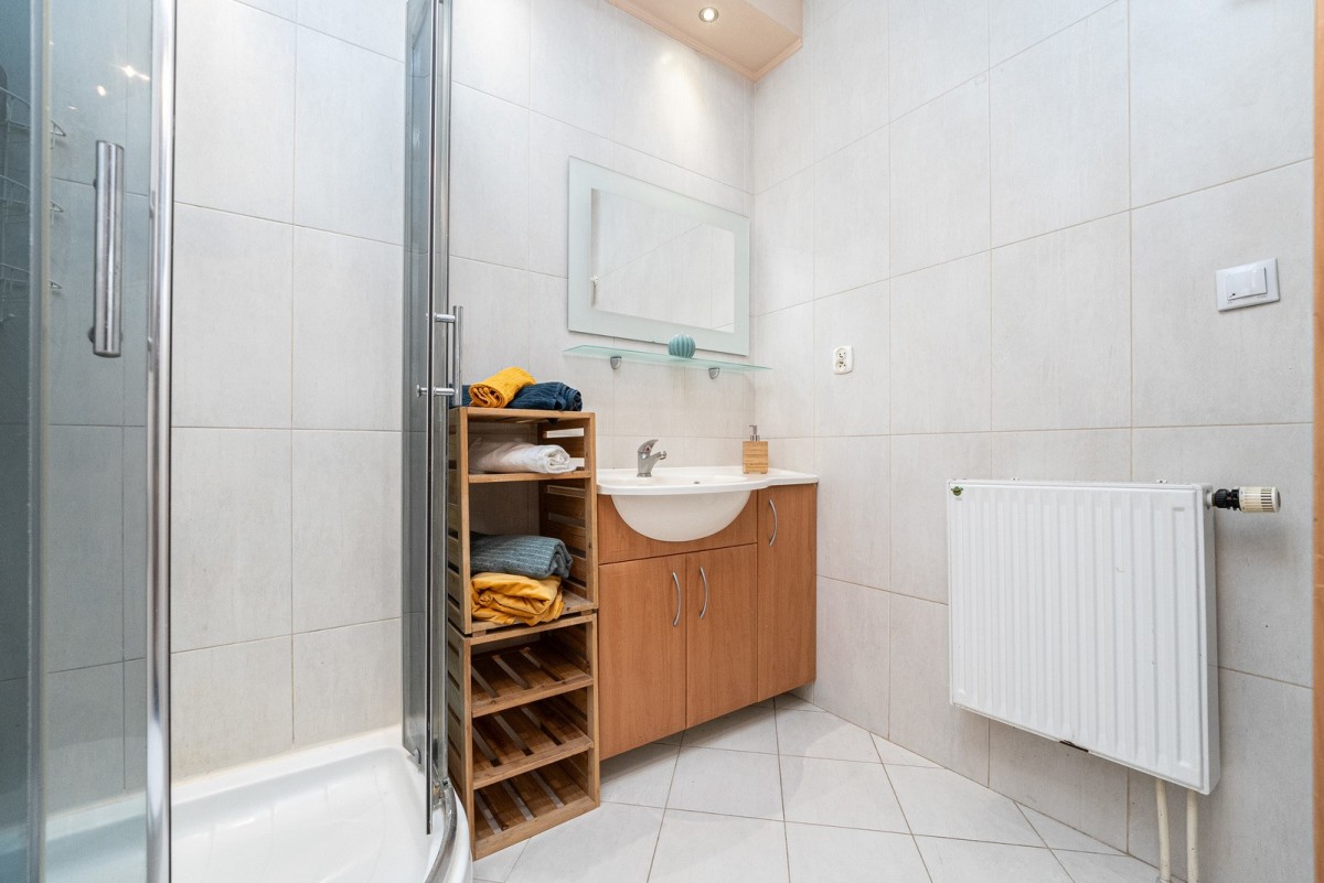 Na podłogach w pokojach położono dębową podłogę. Okna skutecznie izolują od jakichkolwiek dźwięków z zewnątrz, wszystkie mają ekspozycję wschodnią. Dzięki rozkładowi jest to doskonała propozycja dla pary, młodej rodziny lub jako inwestycja pod wynajem.