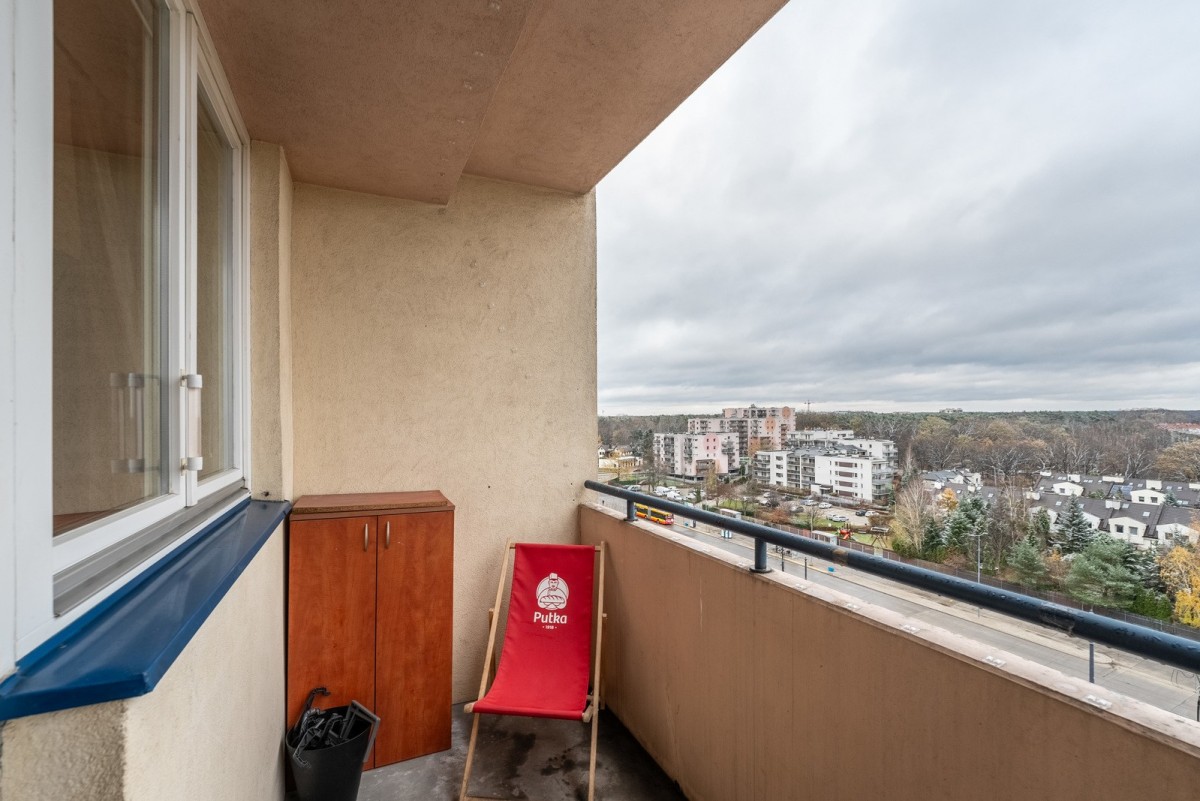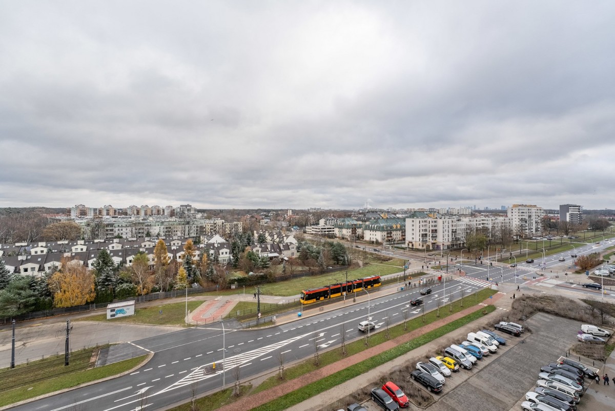 Ustawny salon ma 16,5m2 z wyjście na balkon typu loggia (3m2), z którego rozpościera się widok na niską zabudowę, wszechobecną białołęcką zieleń, można z niego podziwiać także piękne wschody słońca, czy wieżowce centrum Warszawy!