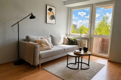 Niewiele jest mieszkań o tak funkcjonalnym rozkładzie, dodatkowo cichych i położonych na spokojnym, rozwiniętym osiedlu. Tuż przy budynku znajduje się duży miejski teren zielony, z boiskami i placem zabaw. Loggia zabudowana, dzięki czemu nie brudzi się podczas deszczu, szyby przesuwne, aby można było ją całkowicie otworzyć, trzymając w ręku filiżankę kawy i ciesząc się porannym słońcem.