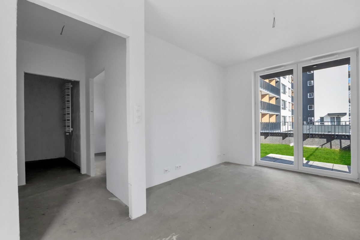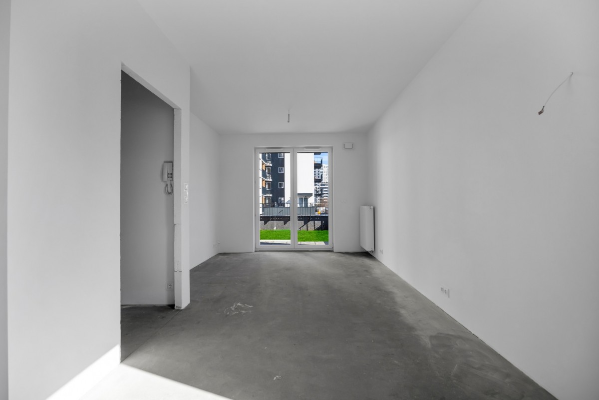 Mieszkanie o powierzchni 39,89 mkw składa się z dwóch pomieszczeń: sypialni oraz salonu z aneksem kuchennym. Przestronny salon łączy się z kuchnią i wyjściem na ogródek (o powierzchni 39,72 mkw) tworząc otwartą i funkcjonalną przestrzeń. Duży ogródek na 1 piętrze, to idealne miejsce na relaks i spędzanie czasu na świeżym powietrzu.
