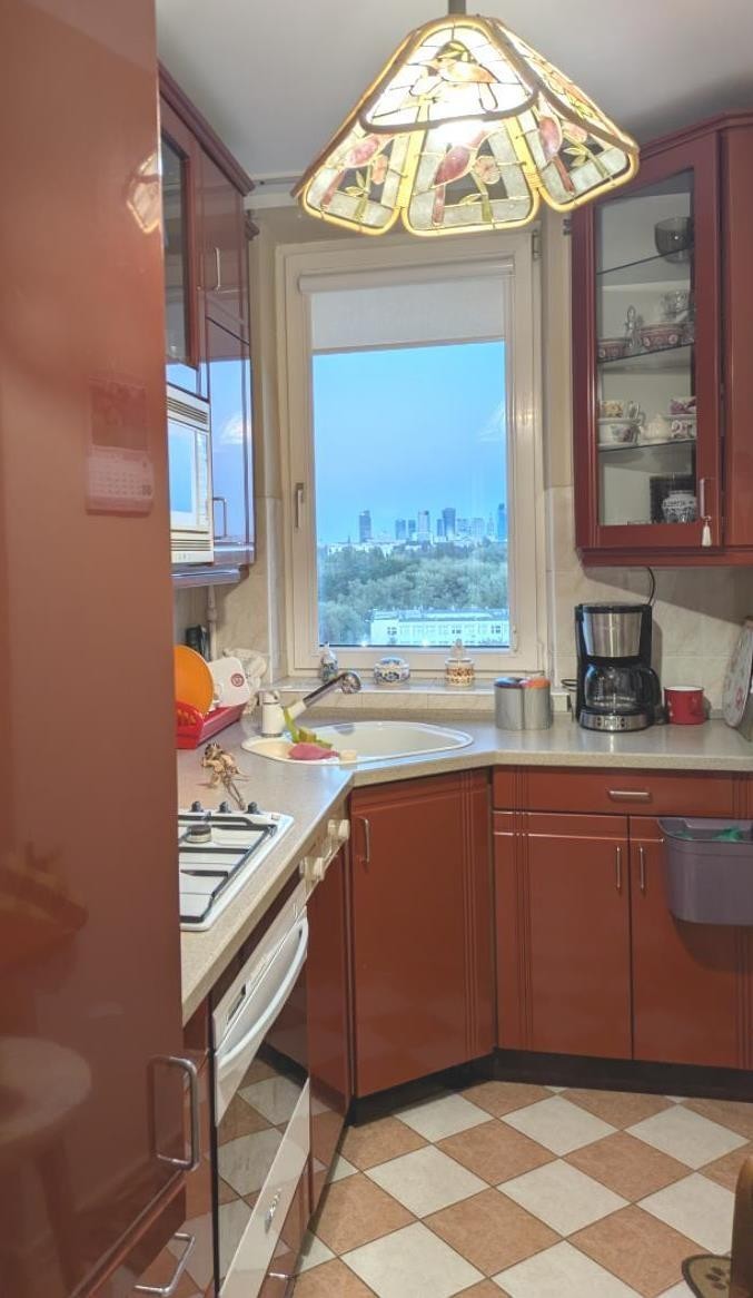 salon (o pow. ok. 17m2) z wyjściem na balkon, z którego roztacza się piękna panorama na centrum Warszawy,