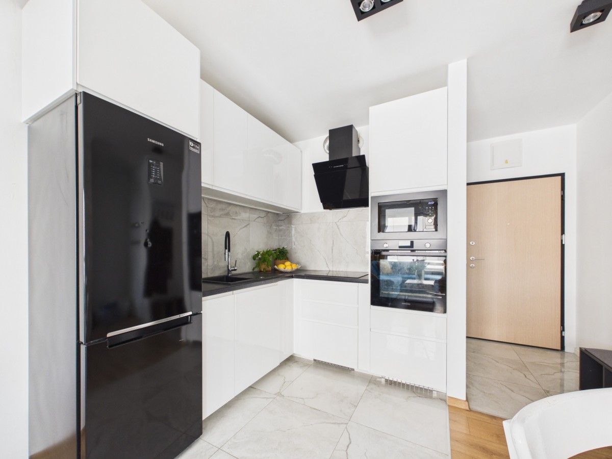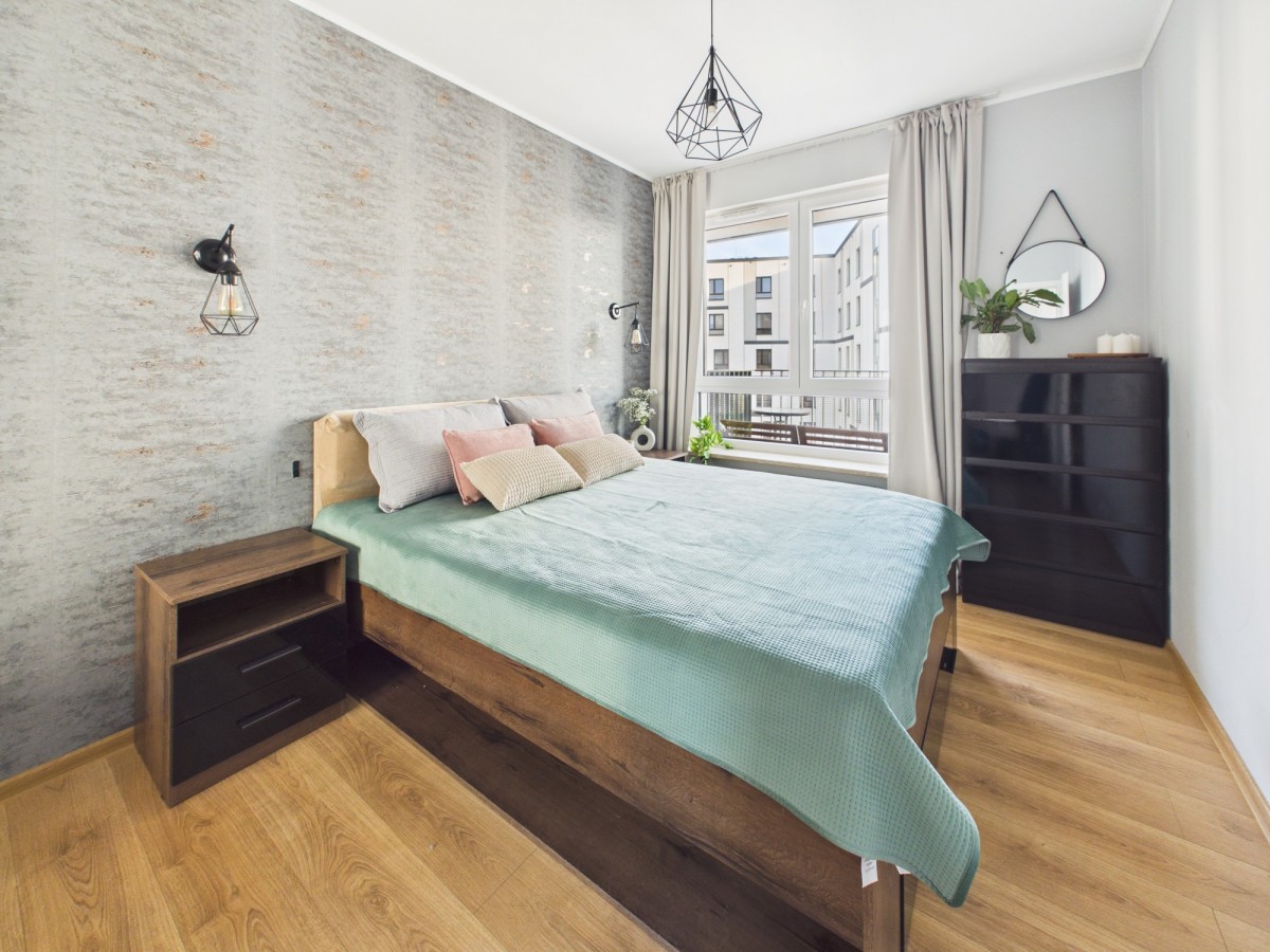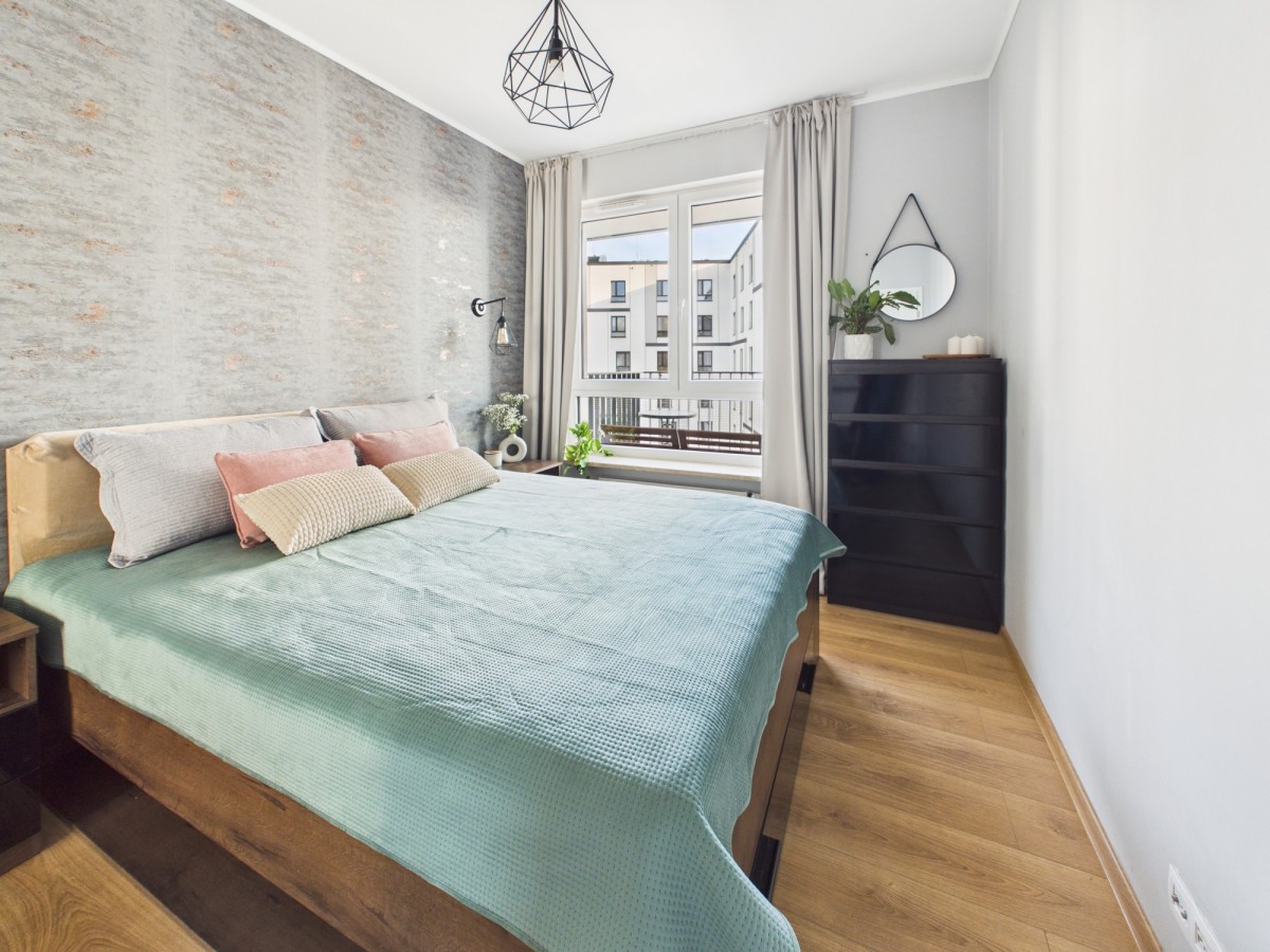 2- pokojowe mieszkanie o powierzchni 43,16 m2 znajduje się na 4 piętrze 6-piętrowego budynku z windą, jest w pełni umeblowane (sofa, stół, krzesła, łóżko, szafa) i wyposażone (zmywarka, pralka, lodówka, zamrażarka, piekarnik, okap).