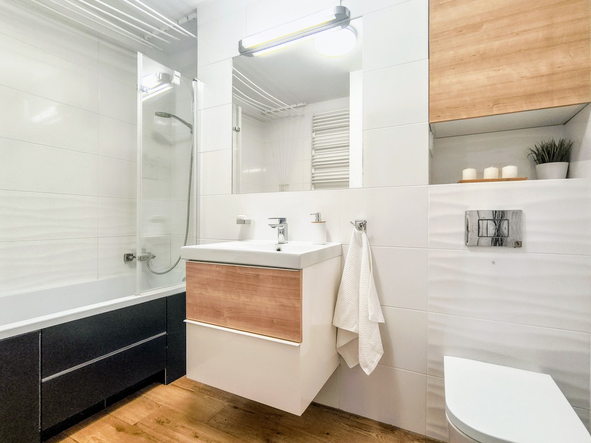 Wnętrze mieszkania zostało zaprojektowane z myślą o funkcjonalności. Przestronny salon z wyjściem na zaciszny balkon 4,28m2 to idealne miejsce na odpoczynek. Dwie ustawne sypialnie (10,2m2 oraz 9m2) dają wiele możliwości aranżacyjnych – zarówno dla rodziny, jak i osób pracujących zdalnie. Oddzielna, wygodna kuchnia (9,5m2) pozwala na komfortowe przygotowywanie posiłków. Obok kuchni znajduje się pomieszczenie gospodarcze, które może zostać zagospodarowane na dodatkowe WC bądź pralnie. Całość utrzymana jest w bardzo dobrym standardzie, dzięki czemu mieszkanie nie wymaga żadnych dodatkowych nakładów finansowych.