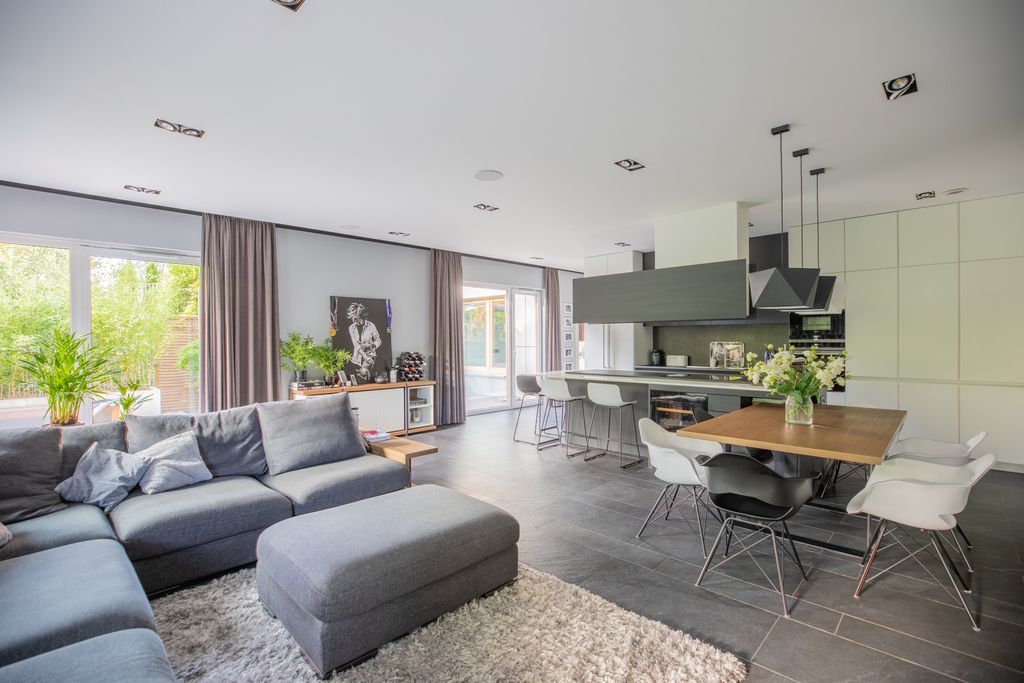 Luksusowy apartament mieszczący się w niezwykle kameralnej inwestycji – sąsiedzi to tylko dwie zaprzyjaźnione rodziny, każda na osobnym niezależnym poziomie. Został zaprojektowany w stylu nowoczesno – minimalistycznym, a jego powierzchnia wynosi 145,18 m2. Do nieruchomości przynależy piękny ogród oraz dwa tarasy. Apartament zlokalizowany jest na warszawskim Marymoncie w bardzo cichej i zielonej okolicy, jednocześnie ze świetnym dojazdem do centrum miasta.Lokalizacja:Apartament zlokalizowany pośród niskiej jednorodzinnej zabudowy, w apartamentowcu mieszczącym trzy nieruchomości. Samo położenie nieruchomości w niecce Marymontu na styku Żoliborza i Bielan wpływa na ciszę i kameralność. Ulica Raduńska jest wewnętrzną ulicą, użytkowaną jedynie przez mieszkańców domów jednorodzinnych; zaś sama niecka osiedla i usytuowanie inwestycji wpływa na całkowite odizolowanie się od głośności ciągów komunikacji i otoczenia. Brak usług, przemysłu oraz bliskość Lasu Bielańskiego i parków daje posesji swoisty mikroklimat. Okolica jest bardzo cicha, spokojna i zielona, pozwalająca na całkowity odpoczynek od zgiełku miasta, a zarazem z bardzo rozwiniętą infrastrukturą w okolicy. Nieopodal przedszkola, szkoły, kawiarnie, sklepy, restauracje, różne usługi.400 m od rezerwatu przyrody – Lasu Bielańskiego, nieopodal również Plac Zabaw – Park Trampolin, 600 metrów park Kępa Potocka, park Stawy Kellera – 250 metrów. Kolejnym bardzo ważnym atutem tej lokalizacji jest dobra komunikacja transportem publicznym – 800 m do stacji Metro Marymont, 1000 metrów do stacji Słodowiec, 700 m do pętli tramwajowej i 100 m do przystanków autobusowych.A jak wygląda transport samochodem? Jedynie 5 minut do węzła trasy S8 i S7 – idealne połączenie do centrum, bez korków oraz świetny wyjazd z Warszawy dla osób, które często podróżują.*Apartament:Luksusowy apartament w stylu nowoczesno – minimalistycznym. Posiada unikalną w tego typu inwestycjach kameralność, bliską domów jednorodzinnym. Od strony frontowej, parter mieszkalny zaczyna się 1,5 metra nad gruntem, co powoduje iż jest podniesiony w stosunku do otoczenia i ulicy. Od strony ogrody mamy w pełni kameralne tarasy, które z każdej strony są odizolowane od sąsiednich posesji bądź wysoką zabudową, bądź zielenią. Prywatny ogród oddzielony jest natomiast murem zagospodarowanym zielenią. Sąsiednie działki są duże i zagospodarowane i równie kameralne. Stykają się ogrodami z każdej strony. Apartament w części salonu, jadalni kuchni, sypialni master oraz tarasów i ogrodu ma wystawę wschodnio-południowo-zachodnią, jest bardzo dobrze doświetlony. .Wnętrze cechuję się perfekcyjnym, otwartym, przejrzystym rozkładem pomieszczeń zaprojektowany został przez architektów realizujących rozwiązania dla nieruchomości Premium. Rządzi tu spokój i harmonia. Mieszkanie jest podzielone na dwie strefy. Pierwsza to strefa dla dzieci. Mieszczą się w niej 2 pokoje, osobna łazienka i przedpokój z szafami oddzielony drzwiami od głównego holu. W drugiej strefie znajduje się łazienka, sypialnia, sauna fińska, sucha i pół parowa, osobne pomieszczenie gospodarcze z pralnią, suszarnią, osobnym zlewem, sekcją do prasowania, szafami – połączone z obiema łazienkami oraz przestronny salon z kuchnią i jadalnią o niebagatelnej powierzchni 60 m2.Kolorystyka w mieszkaniu jest naturalna, przewaga bieli, szarości oraz ciepłych akcentów brązu. Ascetyczne wnętrza cechują się spokojem i ułatwiają odpoczynek od codziennej pracy. Apartament został wykończony z ogromną dbałością o każdy detal oraz z najwyższej jakości materiałów, tj. podłoga – włoski gres, drewno. Ogrzewanie podłogowe w całym mieszkaniu, poza sypialniami (osobne sterowanie stref ogrzewania), blaty kuchenne – kamień płomieniowany oraz spiek.Wszystkie meble w apartamencie. łazienki, sypialnia, pokoje dziecięce oraz zabudowy zostały zrealizowane przez jedno z najbardziej renomowanych studiów meblowych od A do Z. Wchodząc do mieszkania, po lewej stronie znajduje się strefa ,,dziecięca” oddzielona zamykanym przedpokojem. Znajdują się w niej dwa pokoje oraz łazienka.Idąc korytarzem w stronę salonu, naprzeciwko siebie znajdziemy po prawej stronie sypialnię, a po lewej łazienkę oraz pomieszczenie gospodarcze z pralnią, suszarnią, sekcją do prasowania.Tuż obok znajduje się kuchnia połączona z salonem. Bardzo przestronna i wygodna. Cała kuchnia i blaty zostały wykonane z kamienia płomieniowanego oraz spieku. W zlewie znajduje się młynek do odpadów. Wysokiej jakości sprzęt AGD, m.in. lodówka Siemens z najwyższej półki tego producenta, z zamrażarką i kostkarką, płyta indukcyjna, piekarniki, zmywarka, mikrofalówka oraz zabudowana winiarka ,,Liebherr” na 42 wina.Ostatnim pomieszczeniem jest przestronny salon połączony z kuchnią. Salon został zaprojektowany z myślą o perfekcjonizmie oraz ergonomii, prosty przejrzysty układ jak i przede wszystkim funkcjonalne pomieszczenie. Komfortowa i wygodna przestrzeń z zachowaniem elementów luksusu i sztuki. Ogromna kanapa 3×3 m, a do tego system kina domowego i audio Wi-Fi z głośnikami JBL w suficie daje możliwość spotkania się z przyjaciółmi i stworzenia wyjątkowej atmosfery przy dobrych filmach.Wychodząc z salonu mamy dwa wyjścia na dwa tarasy o łącznej powierzchni ok. 100 m2 oraz piękny ogród o powierzchni 100 m2. Tarasy to perfekcyjne miejsce do odpoczynku oraz do spędzenia czasu z rodziną i znajomymi przy obiedzie – na jednym z nich jest wyznaczona strefa jadalniana. Ogród jest miejscem idealnie wpisującym się w formę stylistyczną przestrzeni wnętrza. O układzie geometrycznym, z zachowaniem prostych zharmonizowanych kształtów. Pięknie wyeksponowana roślinność na tle surowości zimnych bieli i szarości. Wielkim ułatwieniem przy utrzymaniu ogrodu jest system au