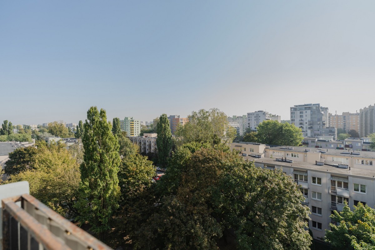 • balkonem z pięknym widokiem min. na Pałac Kultury