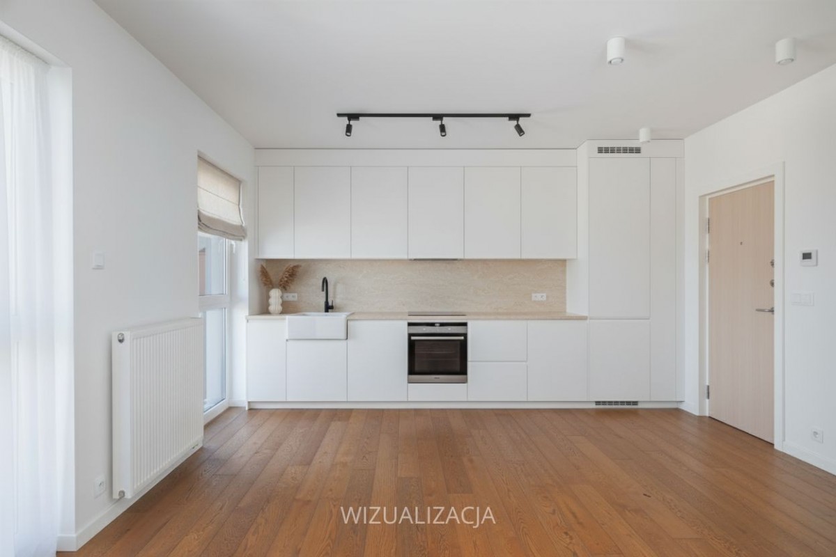 Nowoczesne, przestronne mieszkanie z dużą przeszkloną loggią (14,3 m²) i panoramicznym widokiem na Warszawę. 12. piętro w apartamentowcu z 2018 r., z windą, ochroną i monitoringiem.