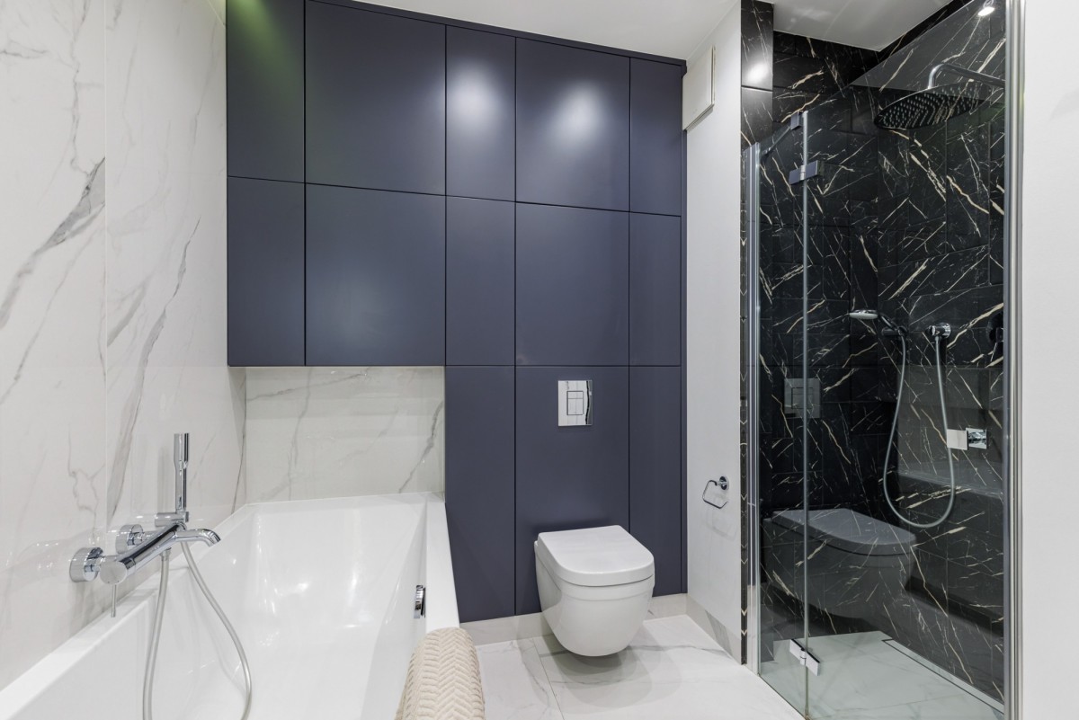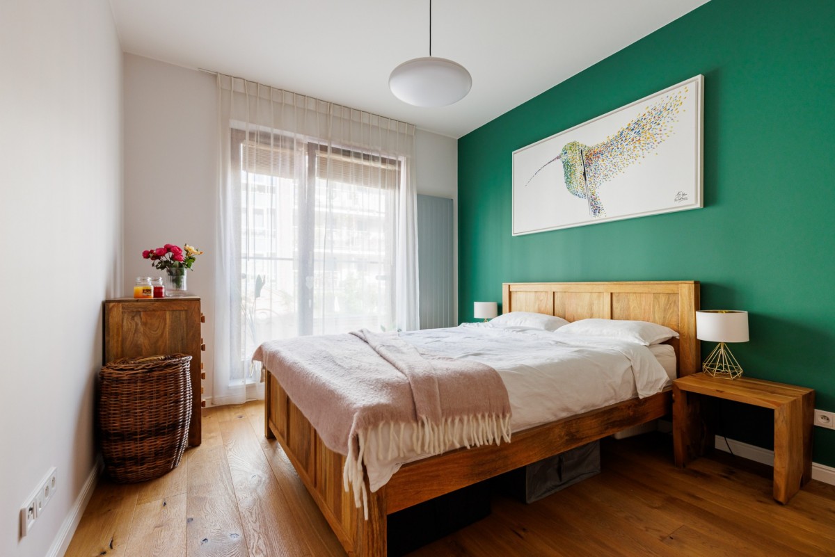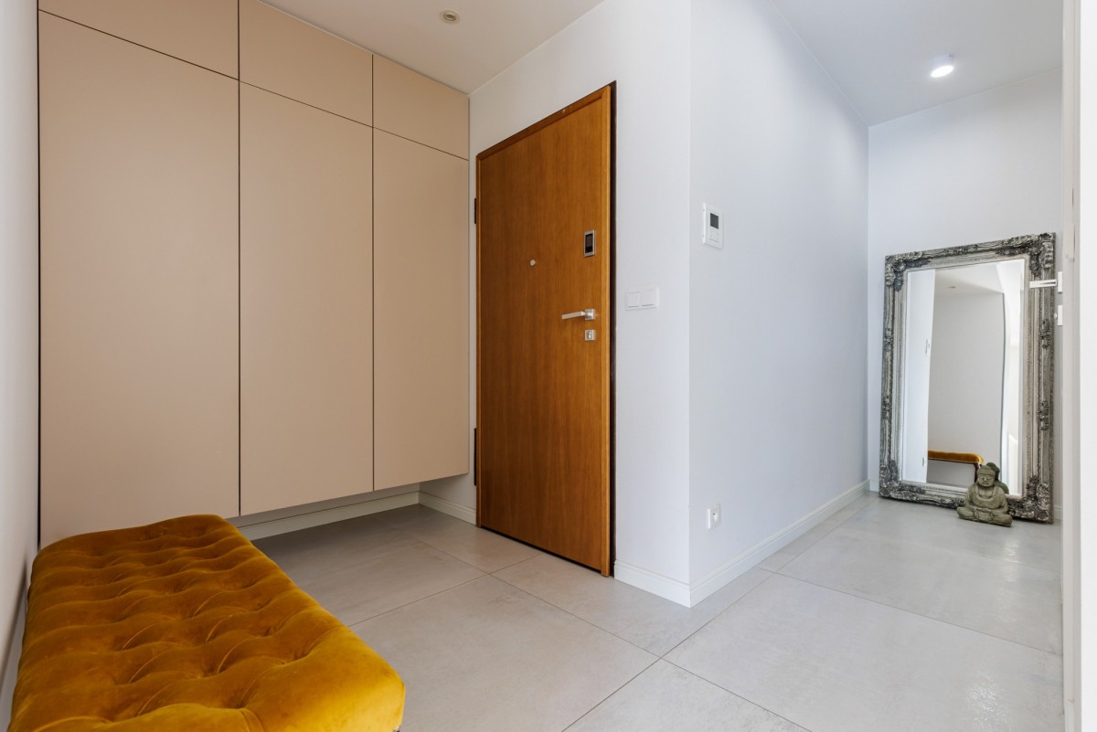 W mieszkaniu znajdują się dwie wygodne sypialnie, które zapewniają prywatność i spokój domownikom. Główna łazienka została zaprojektowana z myślą o komforcie – wyposażona jest zarówno w wannę, jak i w prysznic. Dodatkowe WC to praktyczne rozwiązanie, które sprawdza się szczególnie w przypadku rodziny czy gości. Do dyspozycji mieszkańców jest również garderoba,Całość uzupełniają liczne rozwiązania podnoszące komfort życia: ogrzewanie podłogowe w kuchni i łazience, dekoracyjne grzejniki w każdym pokoju, a także klimatyzacja w salonie,drewniane okna podkreślają wysoką jakość wykończenia i nadają wnętrzom eleganckiego charakteru. Dodatkowym atutem są liczne szafy i zabudowy, które zapewniają dużą ilość miejsca do przechowywania.