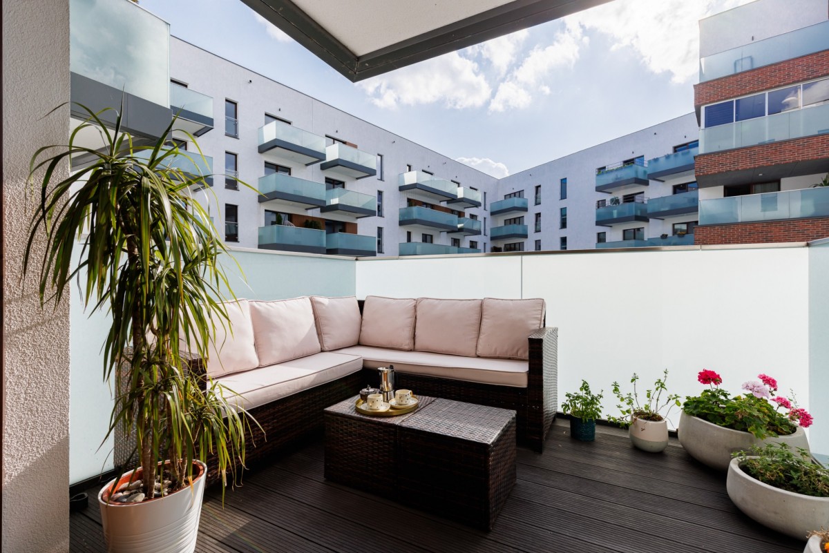 Balkon zapewniający dodatkową przestrzeń do relaksu.