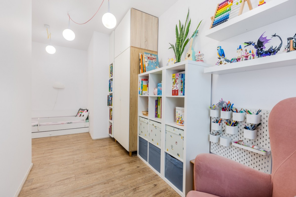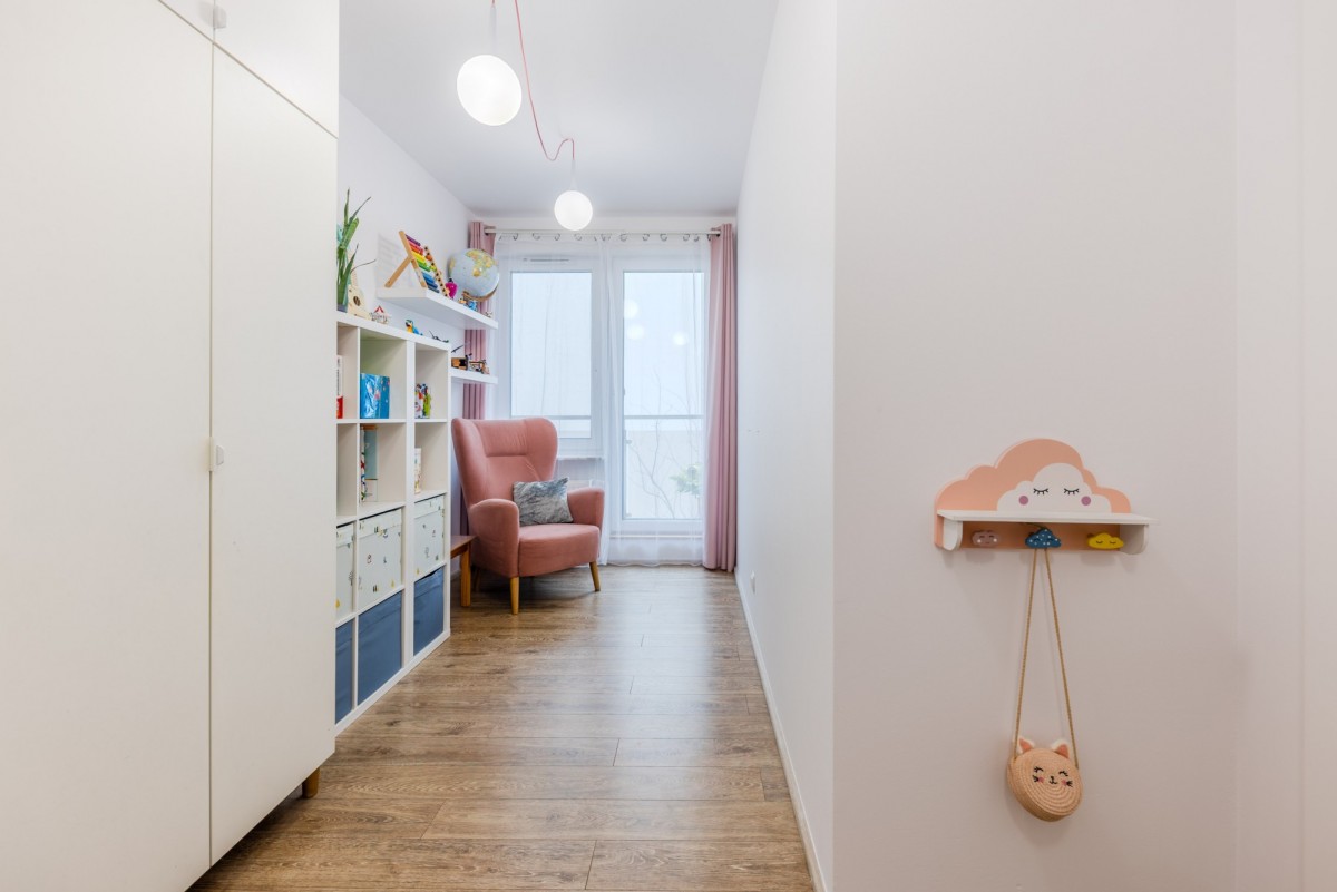 Również z wyjściem na balkon, doskonale sprawdzi się jako pokój dziecka, gabinet lub gościnny.