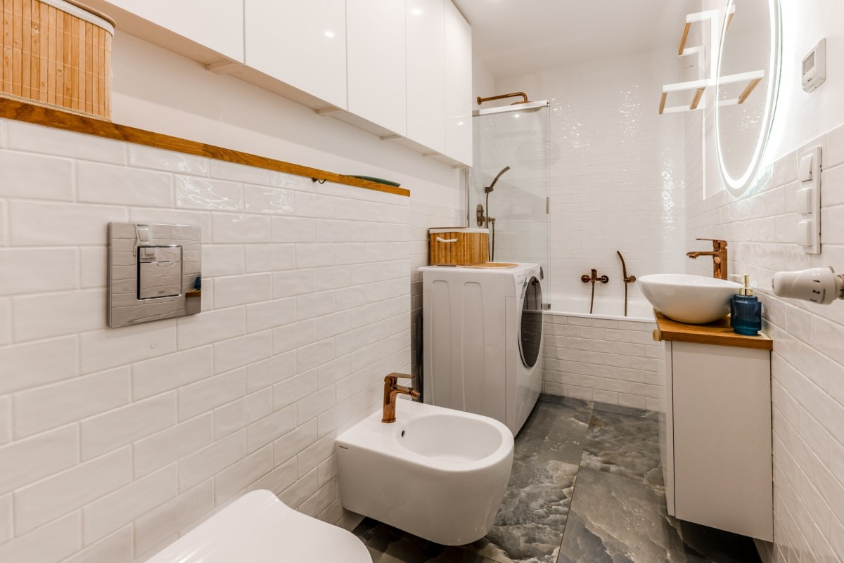 Elegancka, jasna, z wanną i zabudową stolarską. Stan idealny — gotowa do użytku bez nakładów.