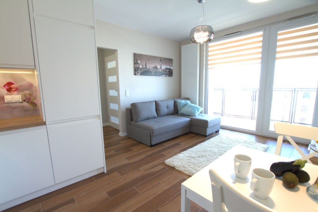 Zapraszamy do obejrzenia naszej nowej oferty do wynajmu. W sklad mieszkania wchodzi : salon z aneksem kuchennym – 17,25m, sypialnia – 10,19m, łazienka – 4,22m oraz przedpokój. Mieszkanie zostało „wczoraj” wykończone i czeka na swojego pierwszego najemce. Nowe meble, nowy sprzęt AGD ( pralka, zmywarka, lodówka ). Czysto, miło i nowocześnie. Dodatkowo miejsce postojowe w hali garażowej. Duża loggia z pięknym widokiem. Panoramiczne okna.