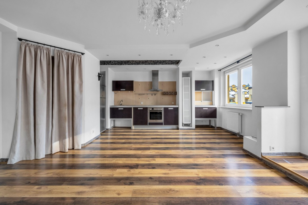 Mieszkanie jest idealną propozycją dla osób, które chcą dopasować przestrzeń do swoich potrzeb. Duża powierzchnia salonu z aneksem kuchennym pozwala wydzielić dodatkową sypialnie. Kuchnia wyposażona w zabudowę z markowym sprzętem AGD (Bosch, Siemens). Zależnie od preferencji stan mieszkania możemy określić jako do odświeżenia lub do remontu – zakładając zmianę aranżacji.