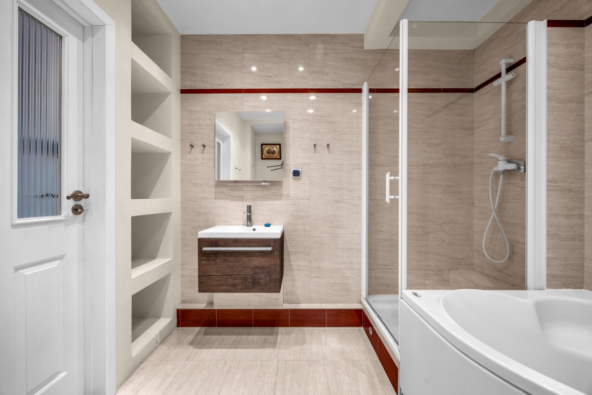 – łazienka, (6,75 m²) z wanną oraz oddzielną kabiną prysznicową.