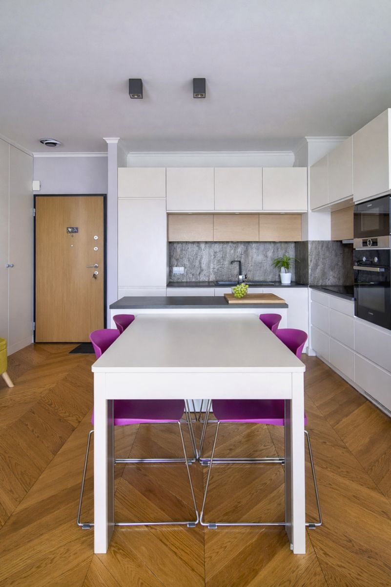 Zostało zaprojektowane i wykończone wysokiej jakości materiałami pod czujnym okiem architekta. Dzięki temu posiada nietuzinkowy i bardzo funkcjonalny układ. Z jednej strony podział na strefy a z drugiej idealnie współgrająca całość którą doskonale wypełnia stonowana kolorystyka.
