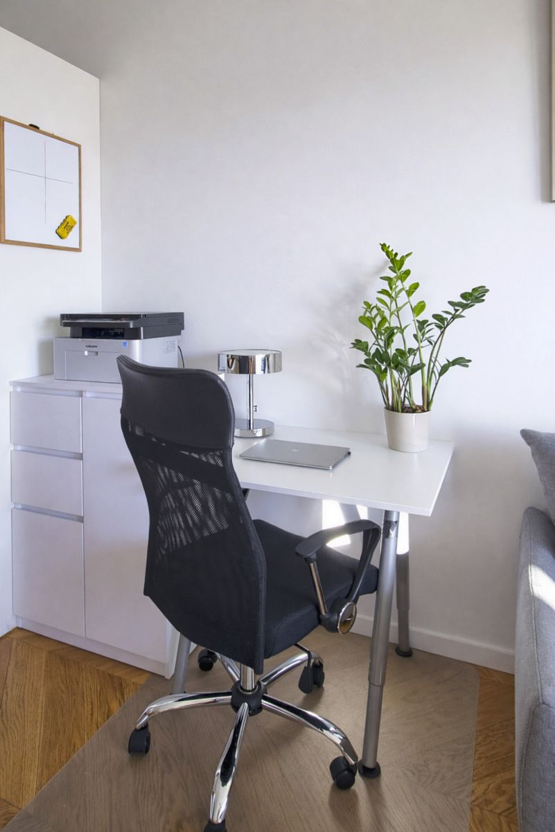 Dobre doświetlenie zapewniają duże okna oraz wschodnia ekspozycja. W upalne dni temperaturę wewnątrz chłodzi klimatyzacja. Mieszkanie znajduje się na ostatnim 5 piętrze. Dzięki temu oraz dobrej akustyce jest w nim stosunkowo cicho. Z przestronnego balkonu rozpościera się widok na klasyczny Ursynów.