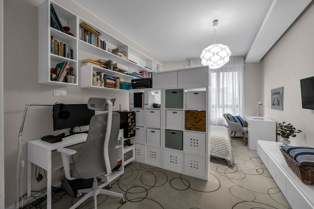– three rooms, with one perfectly suited for a home office (because working with a view of Wilanów doesn’t sound too bad, does it?),