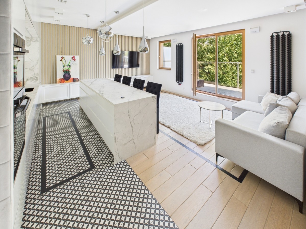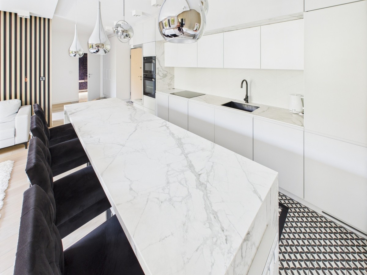 - Duża, funkcjonalna kuchnia z wyspą sprawia, że mieszkanie idealnie nadaje się dla osób, które lubią gotować i spędzać czas przy wspólnym przygotowywaniu posiłków.