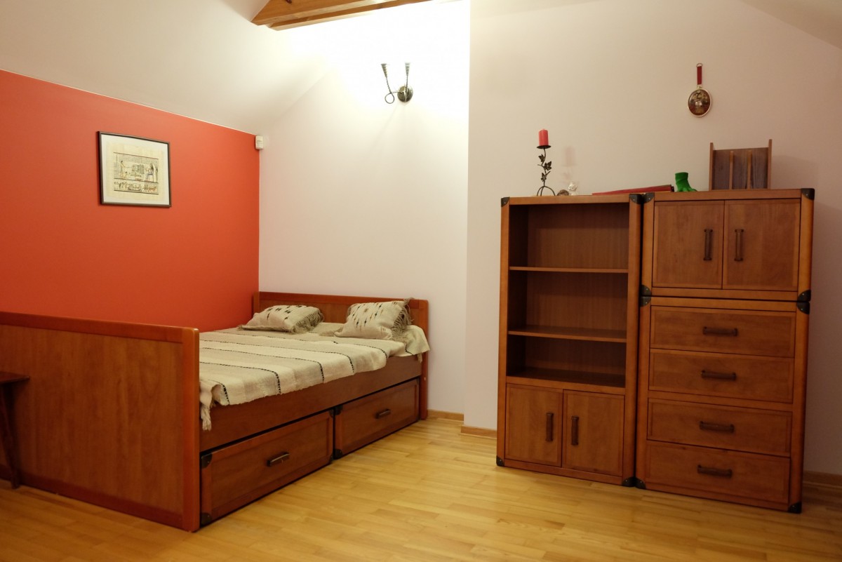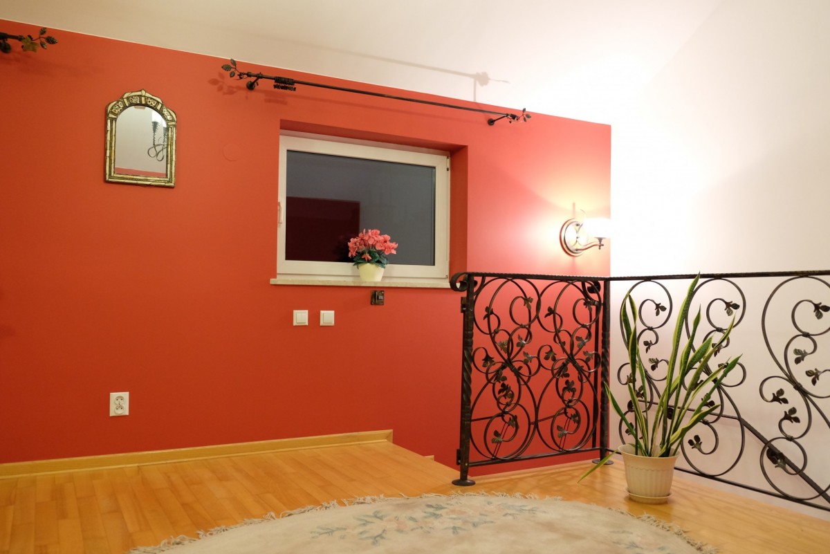 PIĘTRO: pokój (sypialnia/gabinet) z balkonem; sypialnia małżeńska; pokój – mała sypialnia; garderoba; łazienka z wanną; osobna toaleta