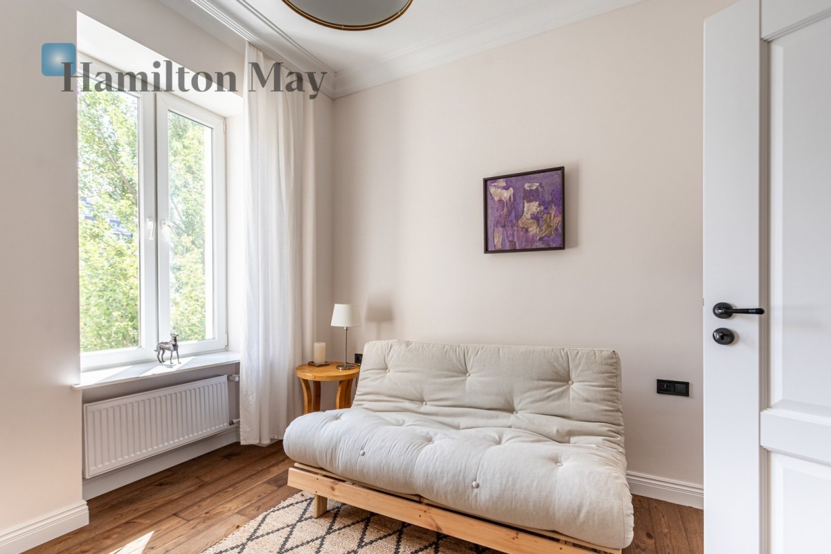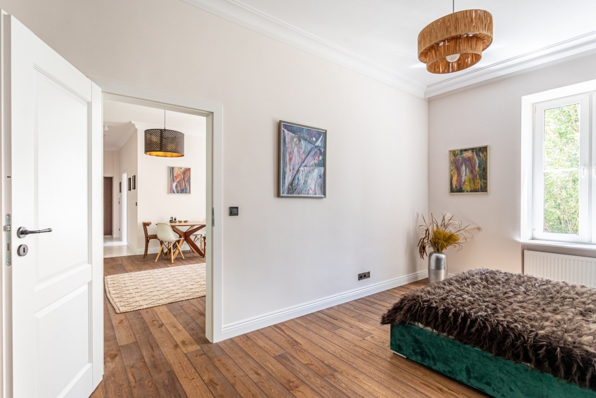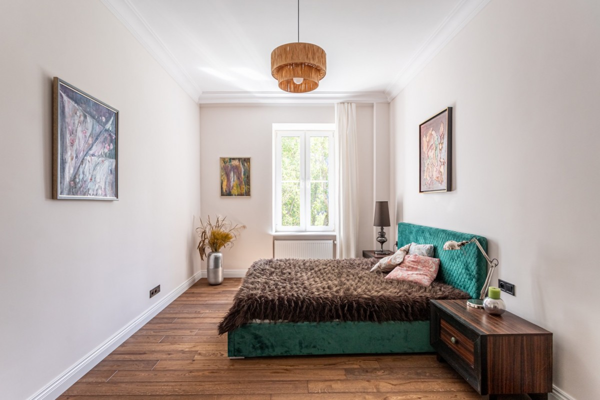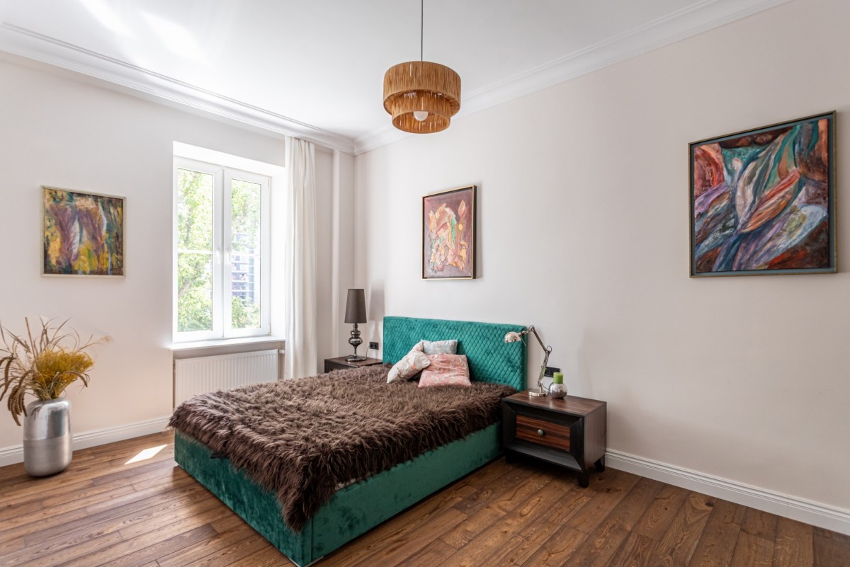 - Sypialnia – 19,7 m² Przytulna przestrzeń z oknami na ciche podwórko – idealna do wypoczynku.