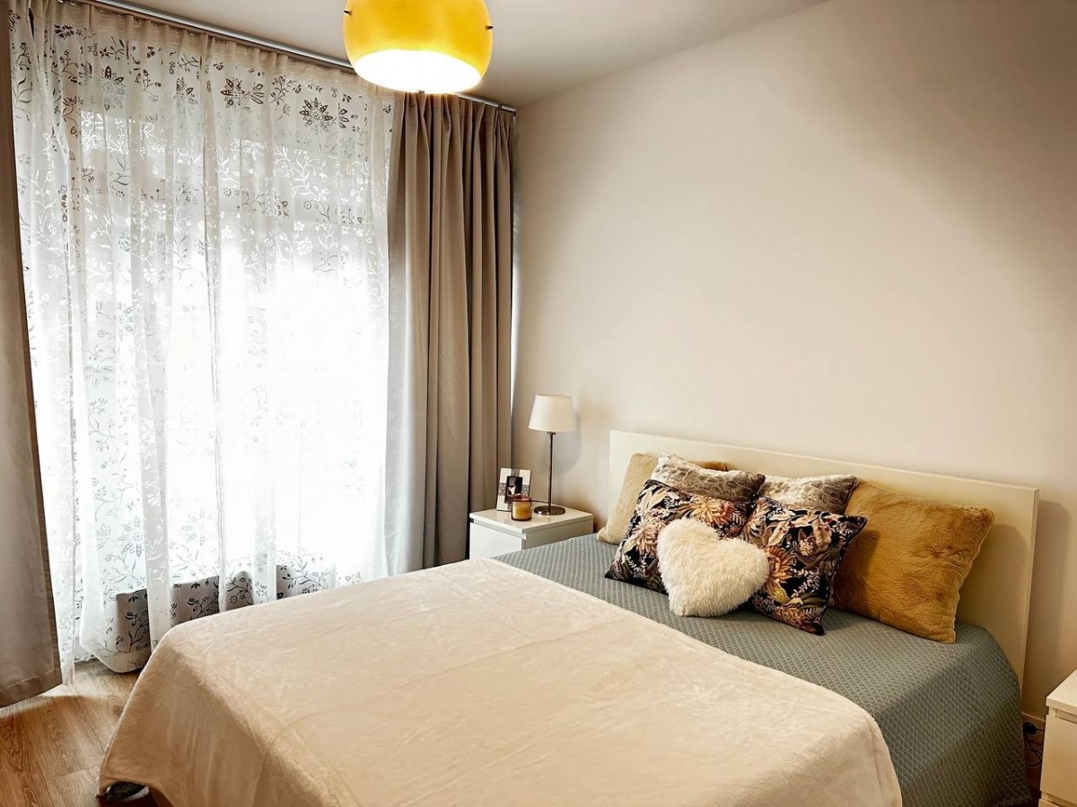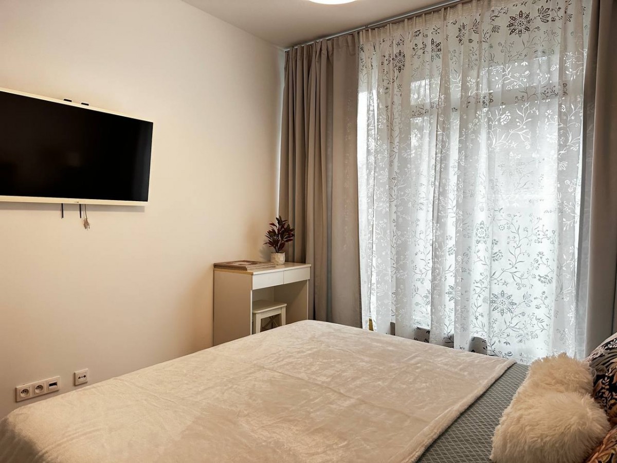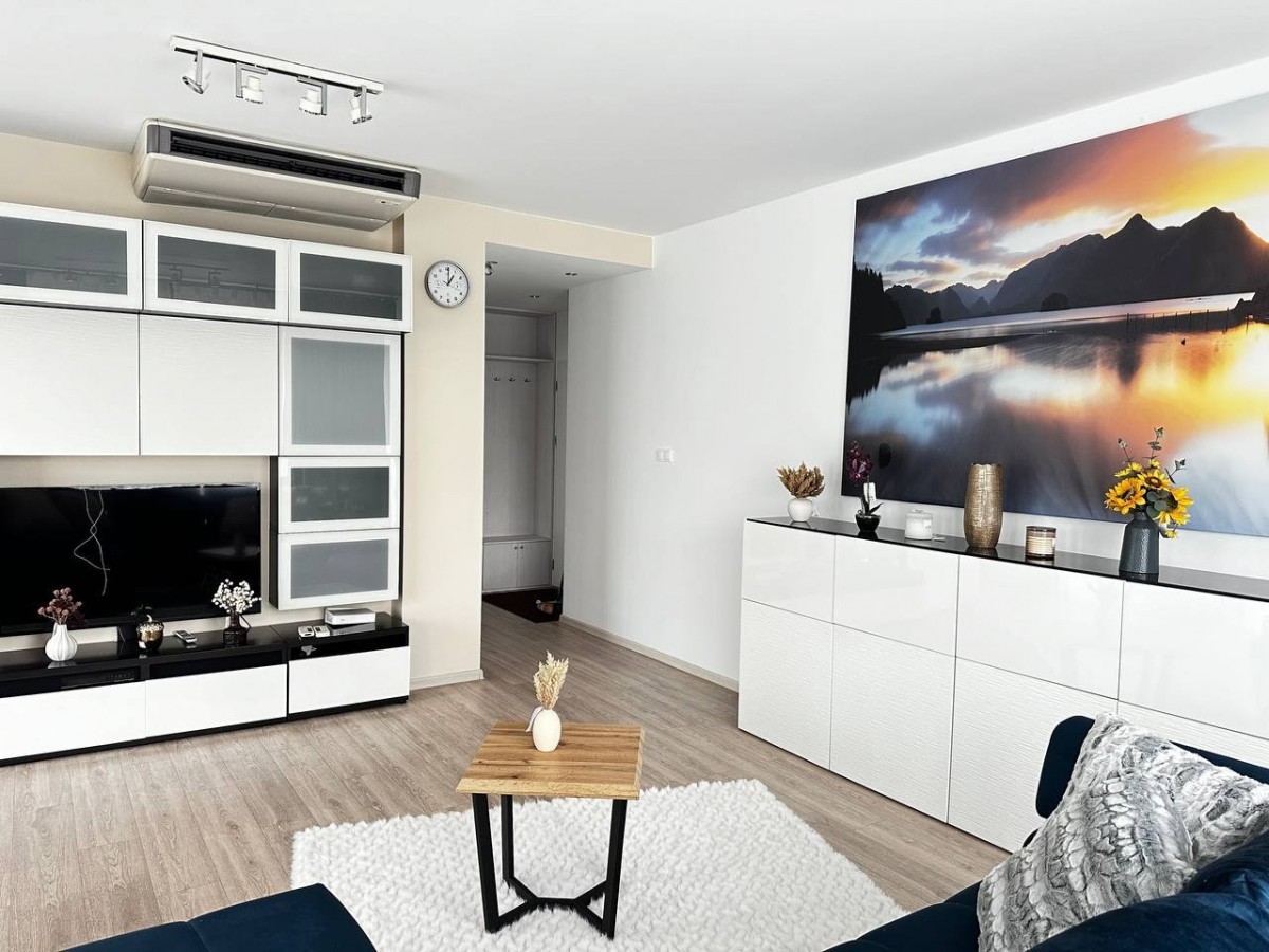 – Sypialnia: Przytulna i elegancka, z dużym, wygodnym łóżkiem oraz pojemną szafą.