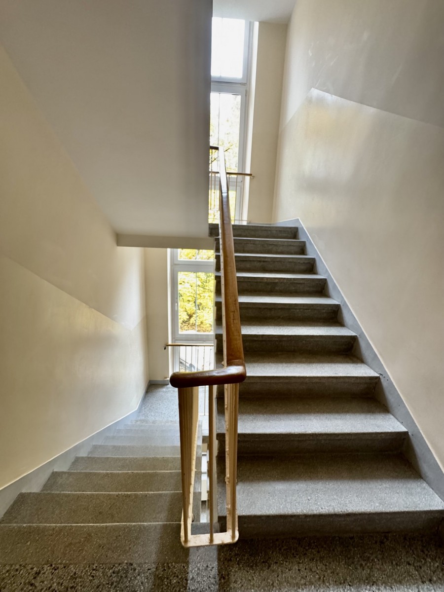 Klatka schodowa jest przestronna, z dużą ilością naturalnego światła i bardzo dobrze utrzymana.
