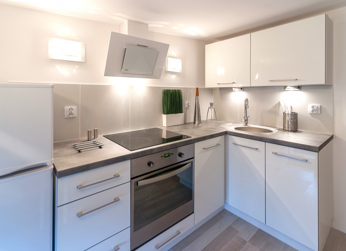 Kuchnia (6,0 mkw) wyposażona w płytę indukcyjną, lodówkę z zamrażarką i wszystko co potrzebne do przygotowywania posiłków; dodatkowo stół i krzesła.
