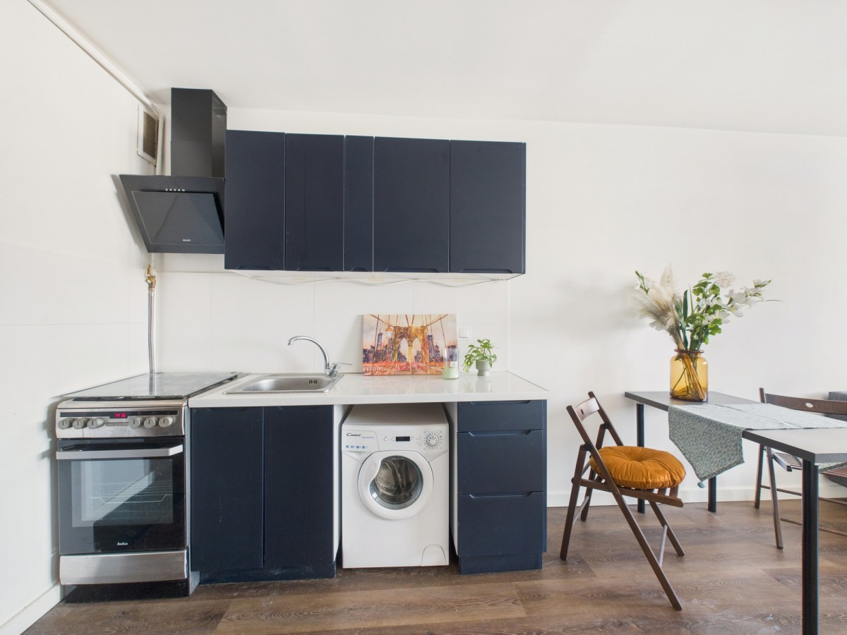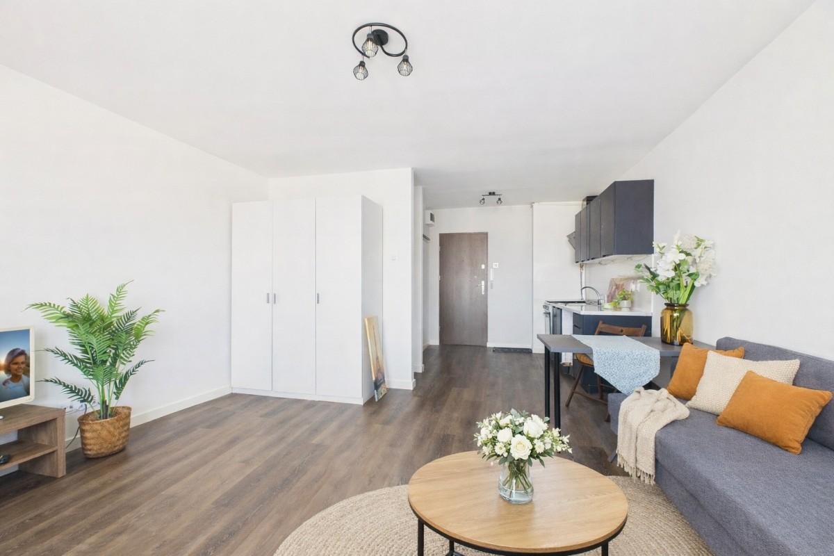 Mieszkanie jest bardzo ustawne  – pokój dzienny z aneksem kuchennym i łazienką