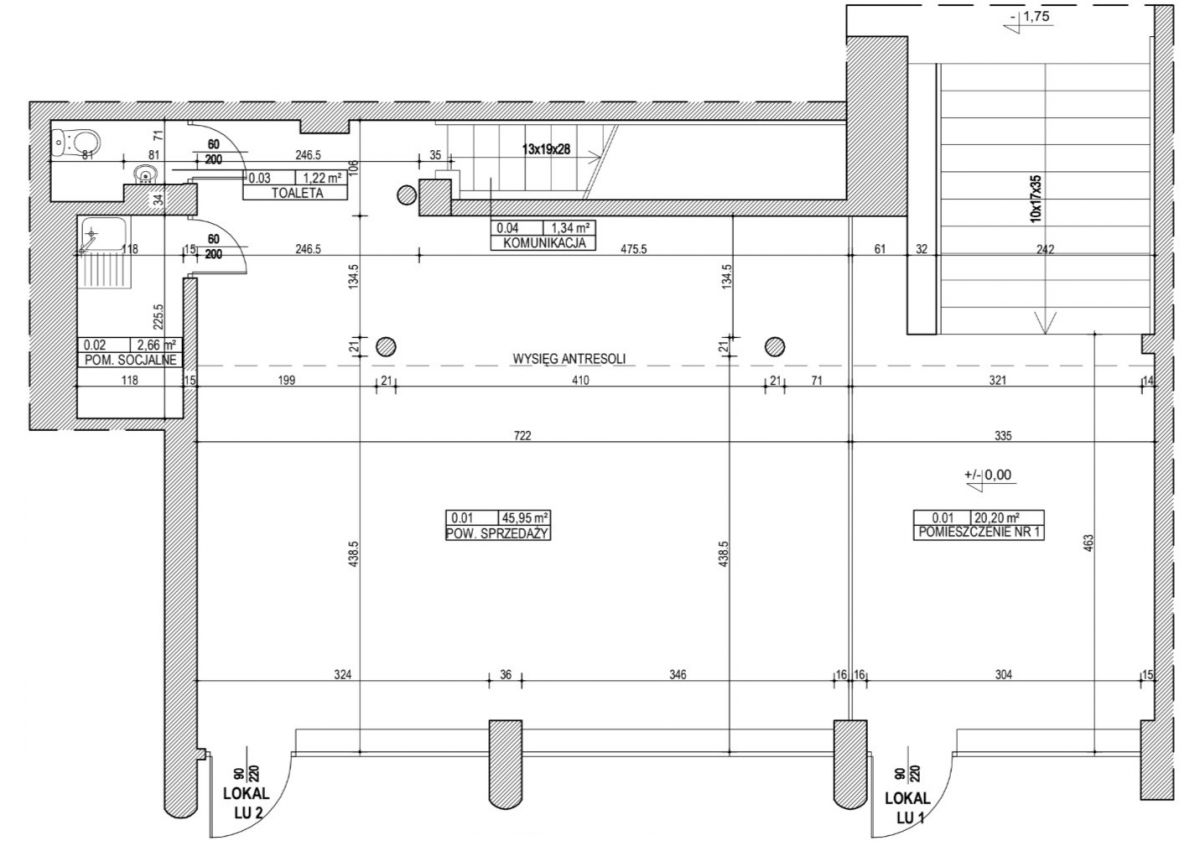 Lokal LU-1 (Parter z Witryną i Piwnica) – Powierzchnia 181,66 m²:
