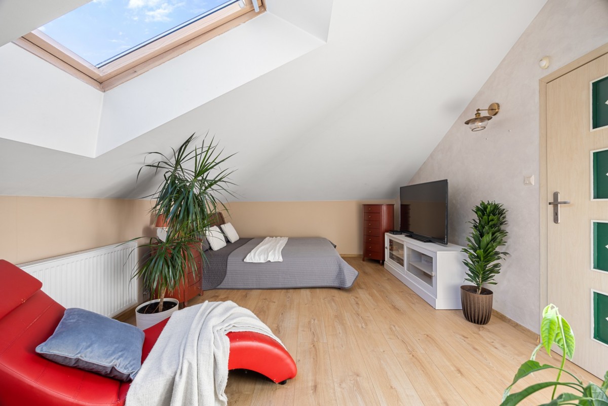 Na sprzedaż dom wolnostojący o powierzchni 193,3 m2 położony na pięknej, zadrzewionej działce o powierzchni 1 000 m2 z ogromnym tarasem (70 m2) otoczonym roślinnością. Wokół nieruchomości znajdziemy las oraz starodrzew.