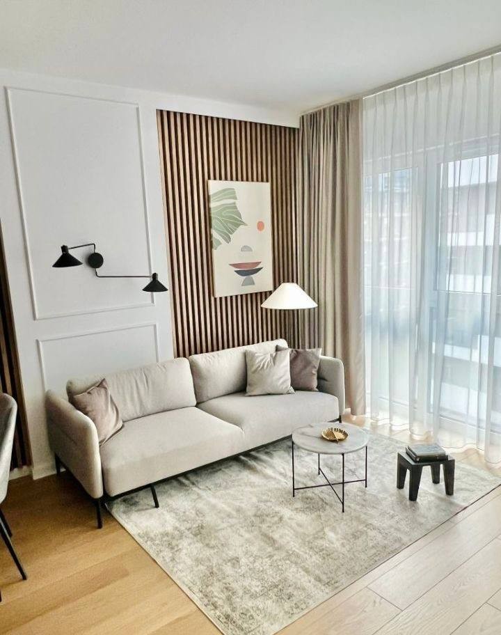 Wnętrze zostało zaprojektowane w najwyższym standardzie, z dbałością o detale, i jest gotowe do zamieszkania bez ponoszenia dodatkowych kosztów.