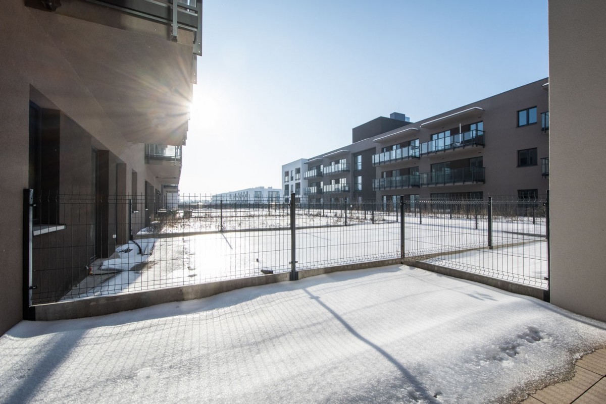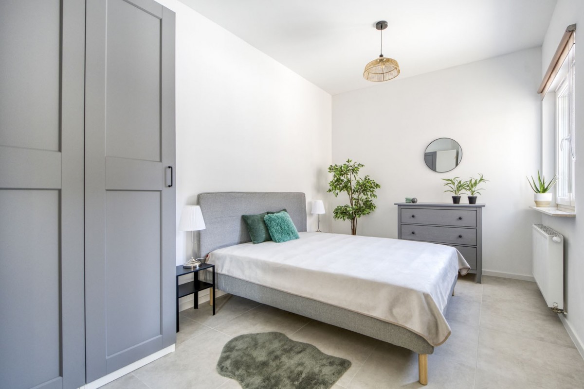 Mieszkanie o powierzchni 46 mkw, składa się z pokoju dziennego z aneksem kuchennym, sypialni, łazienki i przedpokoju. Z pokoju wyjście na ogródek. Mieszkanie nowe, dotąd nieużywane, wyposażone, przyjazne dla zwierząt.