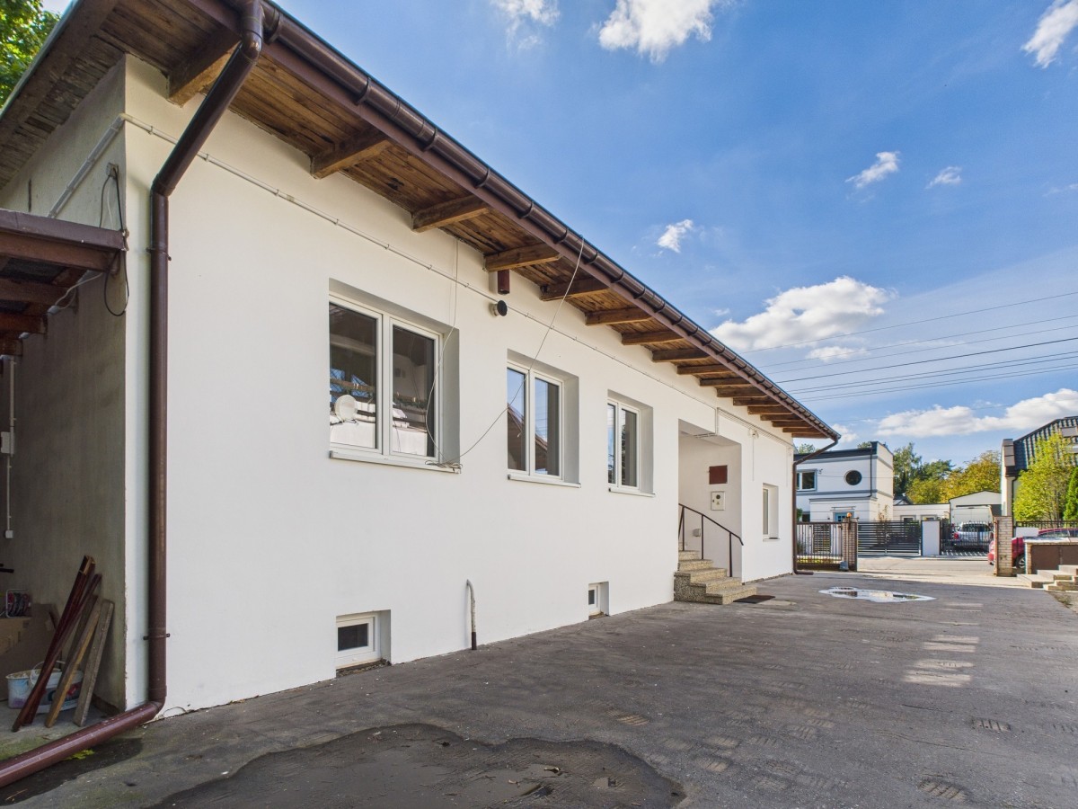 • Wolnostojący budynek – pełna niezależność, osobne wejście na teren nieruchomości, budynek w połowie podpiwniczony (dwa duże pomieszczenia np. na magazyn, zaplecze sanitarne, itp.). Jest przestrzeń na gabinety, recepcję, poczekalnię, zaplecze socjalne.