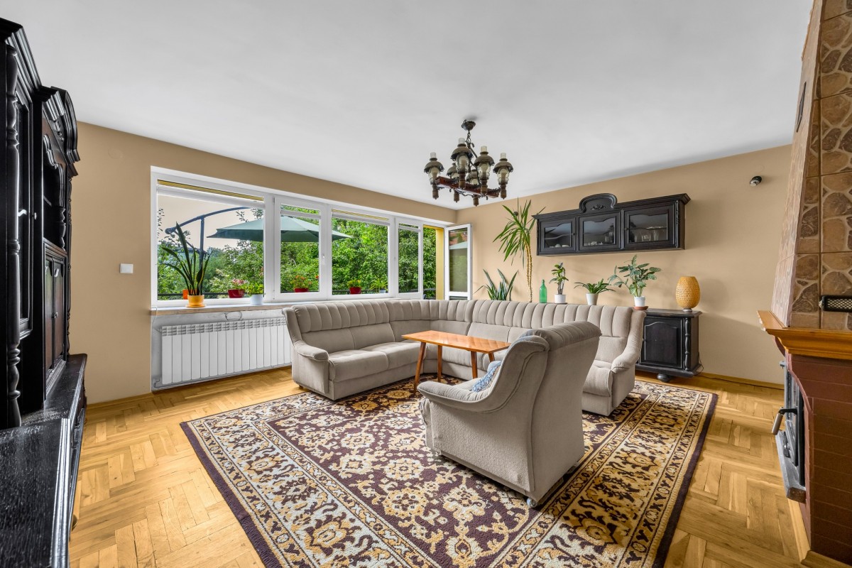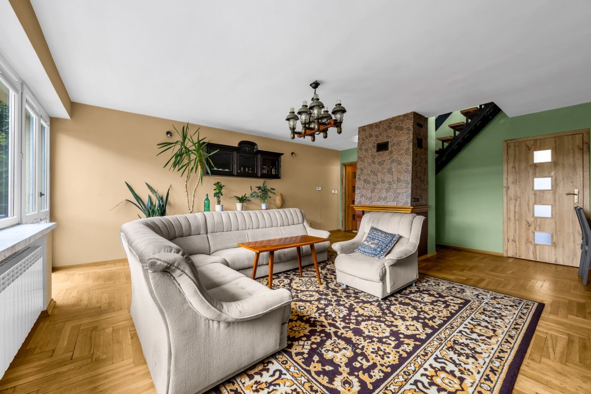 – Przestronny salon z kominkiem, idealny do wypoczynku i spotkań rodzinnych