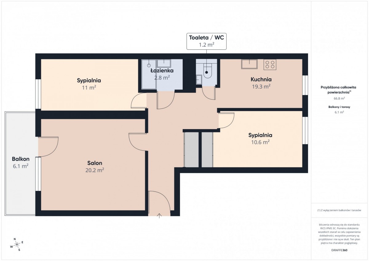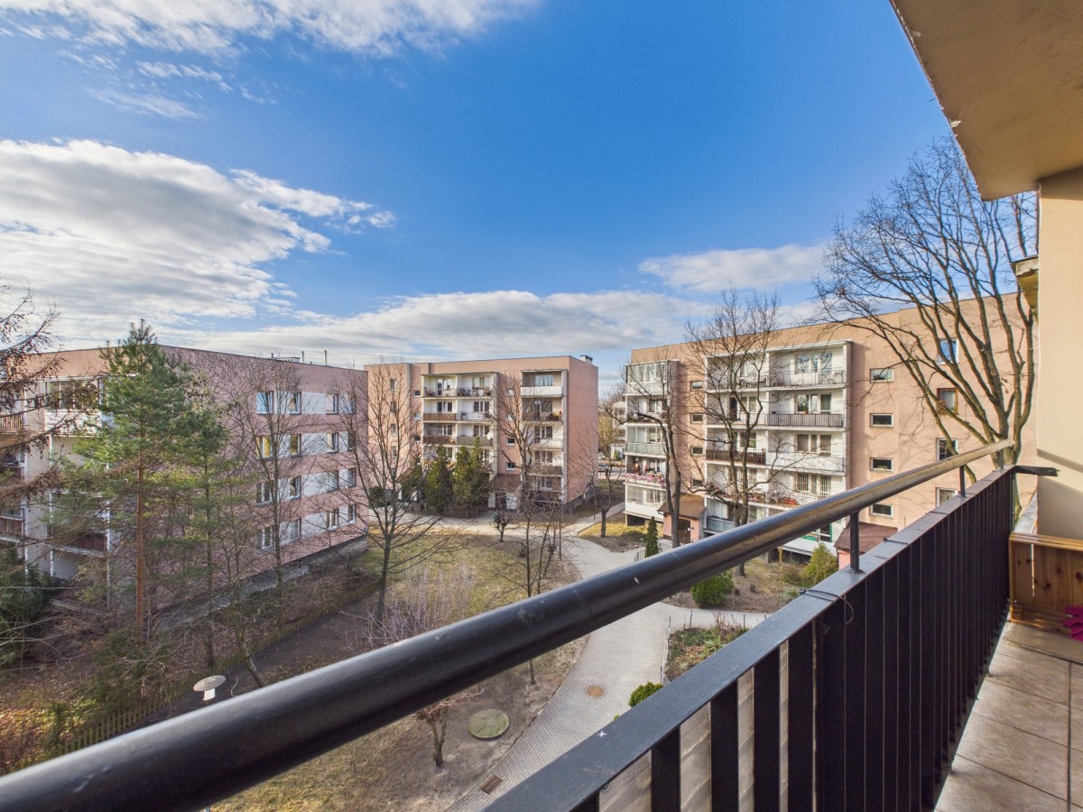 salon ok. 20,2 m² z wyjściem na duży balkon (6,1 m²)